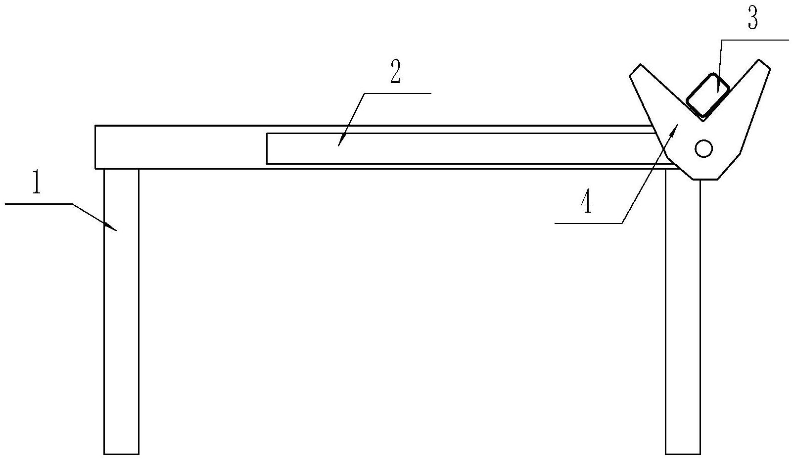本实用新型涉及激光切管机技术领域,特别涉及一种数控激光切管机上料装置的可翻转料叉,包括料叉,所述料叉的开口为直角状,所述料叉转动安装于运料行架上且所述料叉通过驱动装置驱动实现45°翻转。本实用新型料叉初始位置时,直角状的开口向上接受管料,然后在运料行架移动到数控激光切管机上方预定位置时,通过驱动装置驱动进行翻转动作,翻转45°,将管料放平,即可与数控激光切管机的浮动托料装置及管料卡盘进行自动对接完成上料工作,无需人工辅助进行位置矫正即可实现自动化的上料功能。