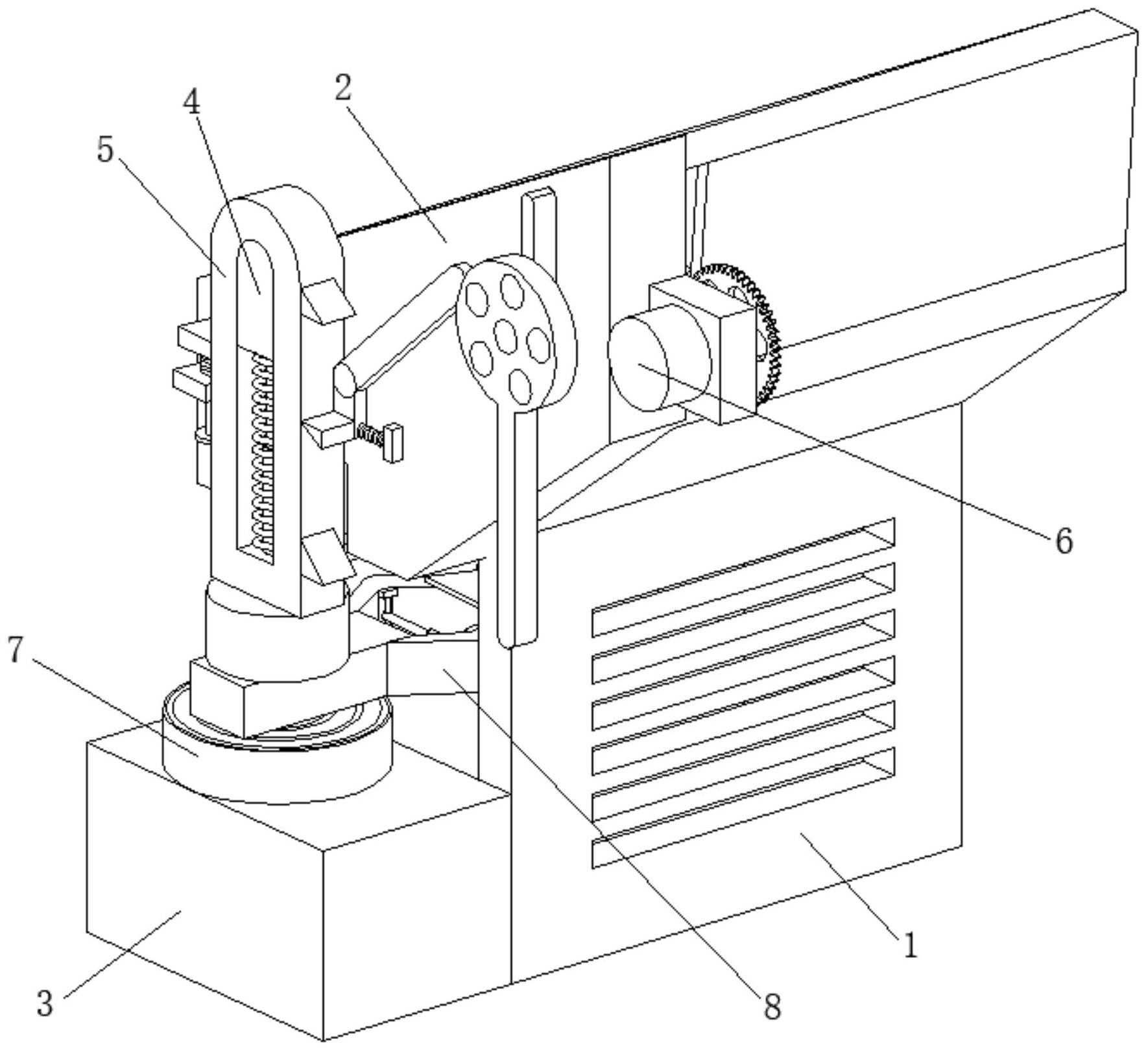 本发明涉及锻造成型技术领域,且公开了一种自动化锻造成型装置,包括箱体,所述箱体的前部分别焊接有安装板和支撑箱,所述安装板的前部焊接有限位块,所述限位块的表面设置有锻造机构,所述安装板的右侧设置有传动机构,所述支撑箱的顶部通过螺栓连接有放置板,所述放置板的顶部设置有装夹机构,通过传动机构、锻造机构、装夹机构的配合运作,可以在锻造的同时自动对钢材进行夹取翻转,从而无需工人手动翻转,减少了工人的劳动强度,防止工人长时间劳作,导致工作效率变低,甚至因疲劳致使安全事故发生,通过传动机构还可以使钢材进行间歇性旋转,从而使其在锻造时钢材不会发生旋转,防止钢材与锤头相互干扰,使装置损坏。