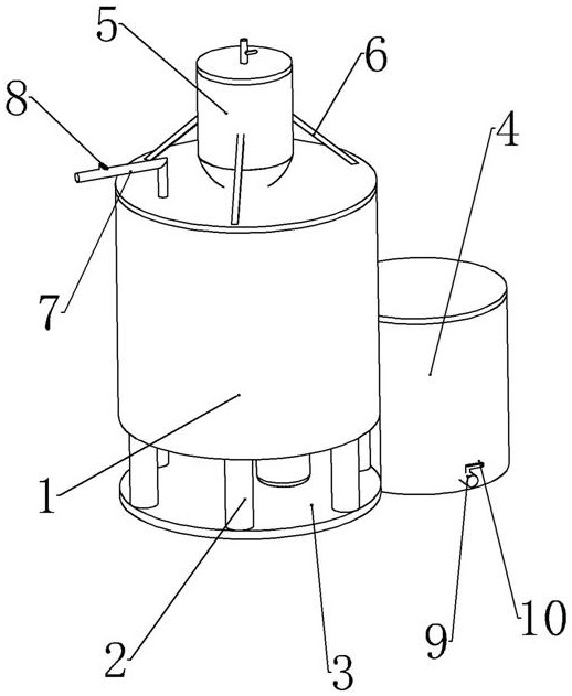 本实用新型公开了一种用于氢燃料电池系统的气水分离装置,包括罐体和转轴,所述罐体底部安装有多个支撑柱,且多个支撑柱呈环形分布,多个所述支撑柱底部安装有同一底座,所述罐体顶部安装有储气罐,且储气罐顶部安装有出气管,所述出气管表面安装有第三阀门,所述转轴转动于罐体内部,且转轴顶部转动于储气罐内部,所述转轴底部设有搅拌液体的搅拌机构,所述罐体表面安装有蓄水罐,且罐体与蓄水罐接触面均开设有出水口,所述罐体内侧设有放水到蓄水罐的放水机构。本实用新型通过搅拌杆的设置,可使气水与液体混合更加充分,使气水里的水分更加容易溶于水中,避免气体中含有大量的水存在。