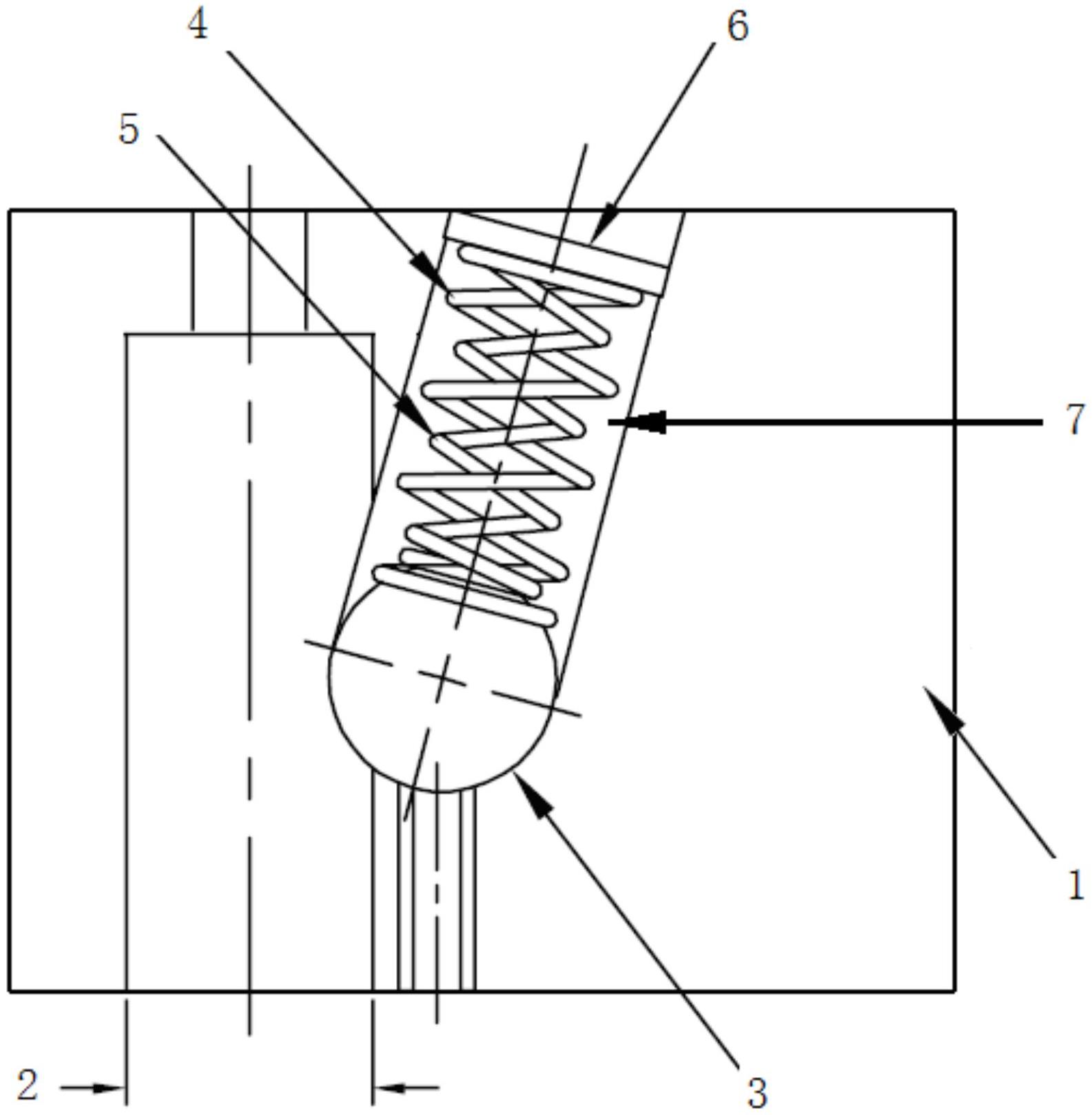 本实用新型涉及汽车模具冲压领域,具体涉及一种整体式双弹簧重载球锁固定座。包括固定座本体、双弹簧机构,所述固定座本体为按照垫板和固定座本体成整体式加工,其内设有冲头安装孔与斜孔,所述冲头安装孔位于斜孔前方,所述双弹簧机构设于斜孔内,所述双弹簧机构包括交错连接的锁紧弹簧与加强弹簧,两弹簧上端通过带有固定卡簧的挡片固定,下端连接钢球。本实用新型可满足汽车模具冲压成型中使用更厚更强的板材,延长球锁固定座的使用寿命,同时与行业现有的标准件完美替换;相差无几的加工成本,模具厂家更易接受。