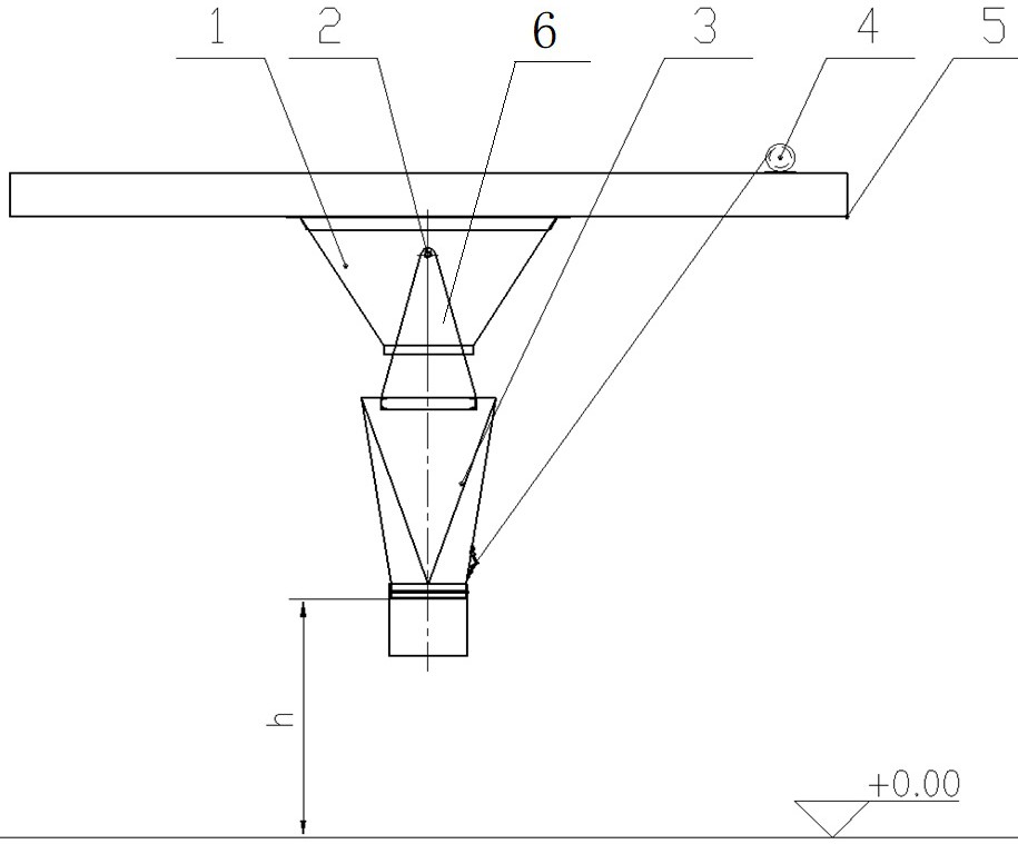 为解决现有拢料斗不能满足接料高度相差较大的设备接料、易撒料漏料的问题,本实用新型提供了一种提升式过渡拢料斗,包括固定拢料斗、转轴、过渡拢料斗、起吊机、平台;所述固定拢料斗固定在平台下方;两个转轴沿固定拢料斗轴线对称地设置在固定拢料斗的外壁上,转轴的轴向与固定拢料斗轴向垂直,转轴的一个端面与固定拢料斗侧壁相对;过渡拢料斗设置在固定拢料斗下方;两个连接架顶端分别与两个转轴连接,连接架底端与过渡拢料斗固定连接;起吊机固定在平台上,起吊机的钢丝绳端头固定在过渡拢料斗外壁的下部;其优点在于结构简单,维护成本低,可以转换卸料高度,实现不同高度设备接料,减少主机卸料门数量,降低成本,通用性好。