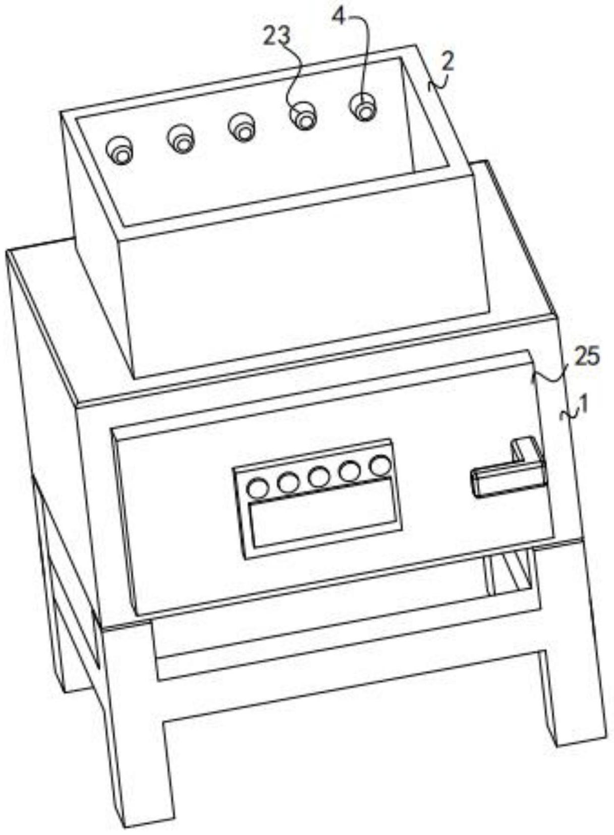 本实用新型公开了一种脉冲车床介质用循环装置,包括内置腔室的机床本体、固定连接在机床本体上的密封框、固定连接在腔室内用于储存液体的储存件以及固定连接在密封框内且与储存件相通的传输件,储存件与机床本体位于密封框内的顶面通过进液管相通,进液管内固定连接有呈螺旋设置的导向件,导向件能够传输介质进入到储存件内;导向件上固定连接有由若干过滤纤维连接组成的过滤绒毛,过滤绒毛能够对介质进行过滤;机床本体内横向滑动连接有密封件,密封件能够对进液管进行密封,能够对介质进行过滤,介质在传输的过程中对介质中的杂质进行过滤,增加介质的干净度,防止储存件内介质受到污染,同时能够进一步增加汽车模具的加工效果。