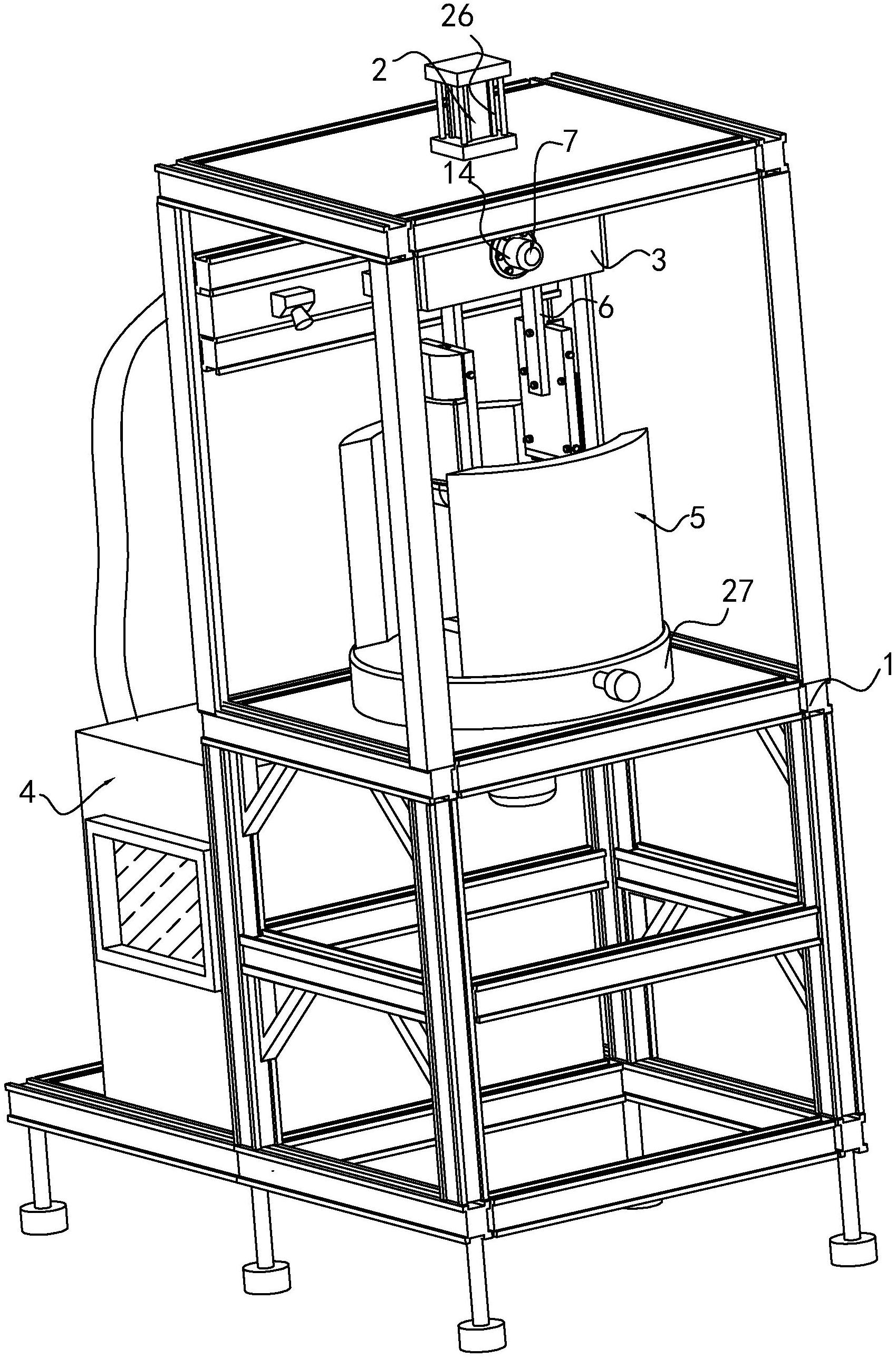 本实用新型公开了一种轮胎模具清洗装置,包括底座、架设在底座上的传输件、滑动连接在底座上并与传输件连接的支撑座以及固定连接在底座上的冲水件,传输件能够传输支撑座竖直方向移动,底座上相对滑动连接有夹持件,该夹持件能够对模具进行夹持并带动模具转动,冲水件能够传输水进入至模具内,支撑座上相对滑动连接有移动杆,支撑座上固定连接有驱动件,该驱动件一端与移动杆连接,驱动件能够带动移动杆同步相对移动,移动杆上固定连接有主延伸块,主延伸块上固定连接有主毛刷,另一根移动杆上固定连接有次延伸块,次延伸块上固定连接有主刮板,能够对不同尺寸的轮胎模具进行清理,进而增加轮胎模具的清洗效果,进而能够增加清理的实用性。
