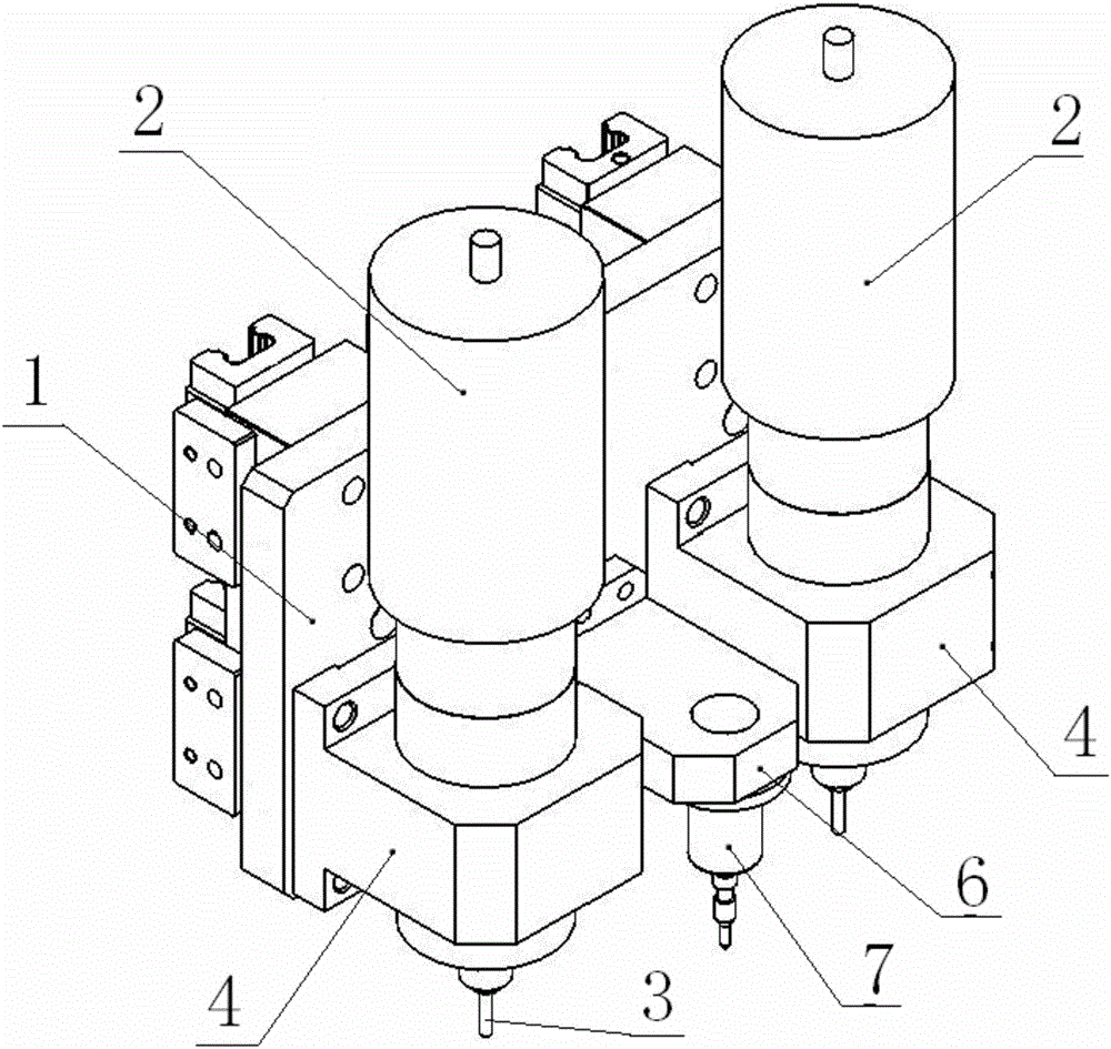 本实用新型公开了一种带测量装置的主轴箱结构,它与数控系统配套使用,它包括:主轴箱体;至少一个主轴,所述主轴安装在主轴箱体上,并且所述主轴带有主轴刀具;测量探头,所述测量探头安装在主轴箱体上,所述测量探头用于得到加工待加工零件的加工基准的测量探头空间坐标,数控系统中具有体现测量探头与主轴刀具之间的距离的距离空间坐标,所述测量探头与数控系统相连,以便所述数控系统根据距离空间坐标和测量探头传递的测量探头空间坐标得到主轴刀具的主轴刀具空间坐标。本实用新型无需频繁换刀,省去了换刀时间和重复对刀时间,提高生产效率、保证加工精度。