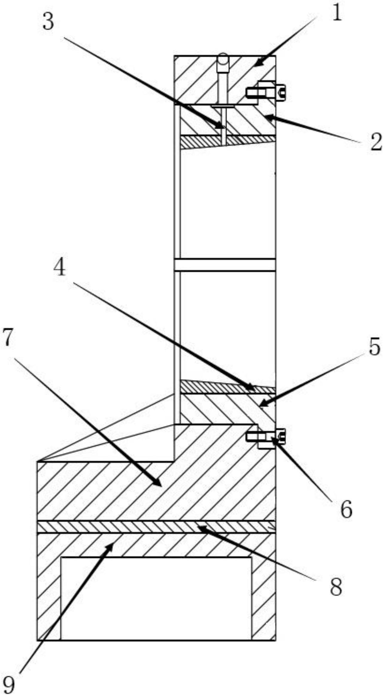 本实用新型公开了一种主轴中心架,包括上弹子油杯及润滑油路、浇筑巴氏合金锥套、下轴瓦、固定螺钉、调整垫和滑板,所述滑板上安装调整垫,所述下基座上安装下轴瓦,所述浇筑巴氏合金锥套上方设置上轴瓦,所述上轴瓦和下轴瓦内部设置固定螺钉,所述上轴瓦上方安装上基座,所述上轴瓦内设置弹子油杯及润滑油路。该主轴中心架设置有一套方便安装拆卸的轴瓦:这套主轴中心架的上轴瓦和下轴瓦均通过螺栓固定在上基座和下基座上,当使用者长时间使用这套主轴中心架致使上轴瓦和下轴瓦磨损时,使用者可以通过拆除螺栓后更换上轴瓦和下轴瓦,比起传统的中心架,更换磨损部件要更为方便。