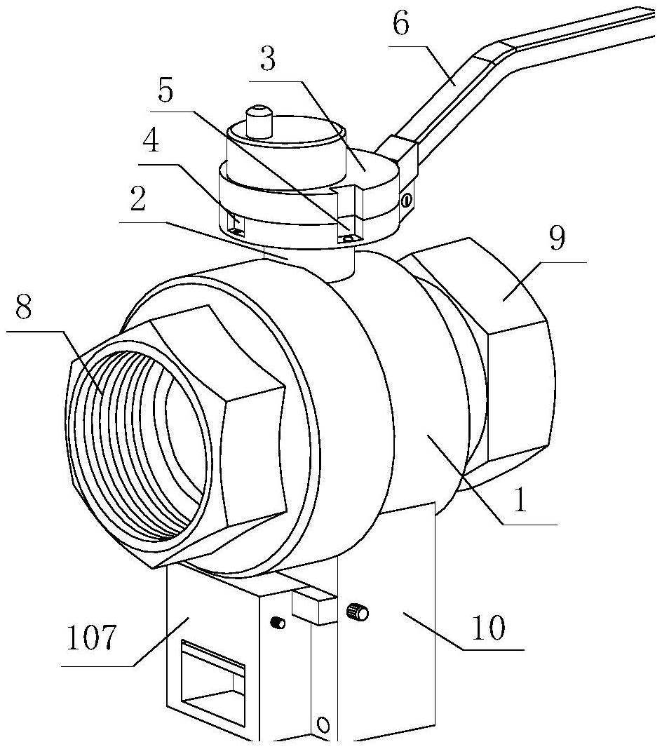 本实用新型公开了一种具有防盗和开关状态标识燃气球阀,其结构包括球阀主体和加固装置,本实用新型通过设置了加固装置,即在蜗杆与蜗轮配合下,转盘转动,实现前侧相连接移动架的带动,进而移动架下端两侧设置的支撑杆,就可实现球阀的支撑加固活动,从而达到了提高球阀安装牢固性的加强,避免球阀发生松动现象的优点,且在外壳前侧夹持组件配合下,可达到提高加固装置功能性,即通过防护壳内部设置双向螺柱转动下,双向螺柱两侧螺纹块可带动导杆移动倾斜,使导杆下端压板,实现与外部连接处的压紧,从而达到了加固装置使用功能性,实现球阀主体辅助夹持固定的优点。