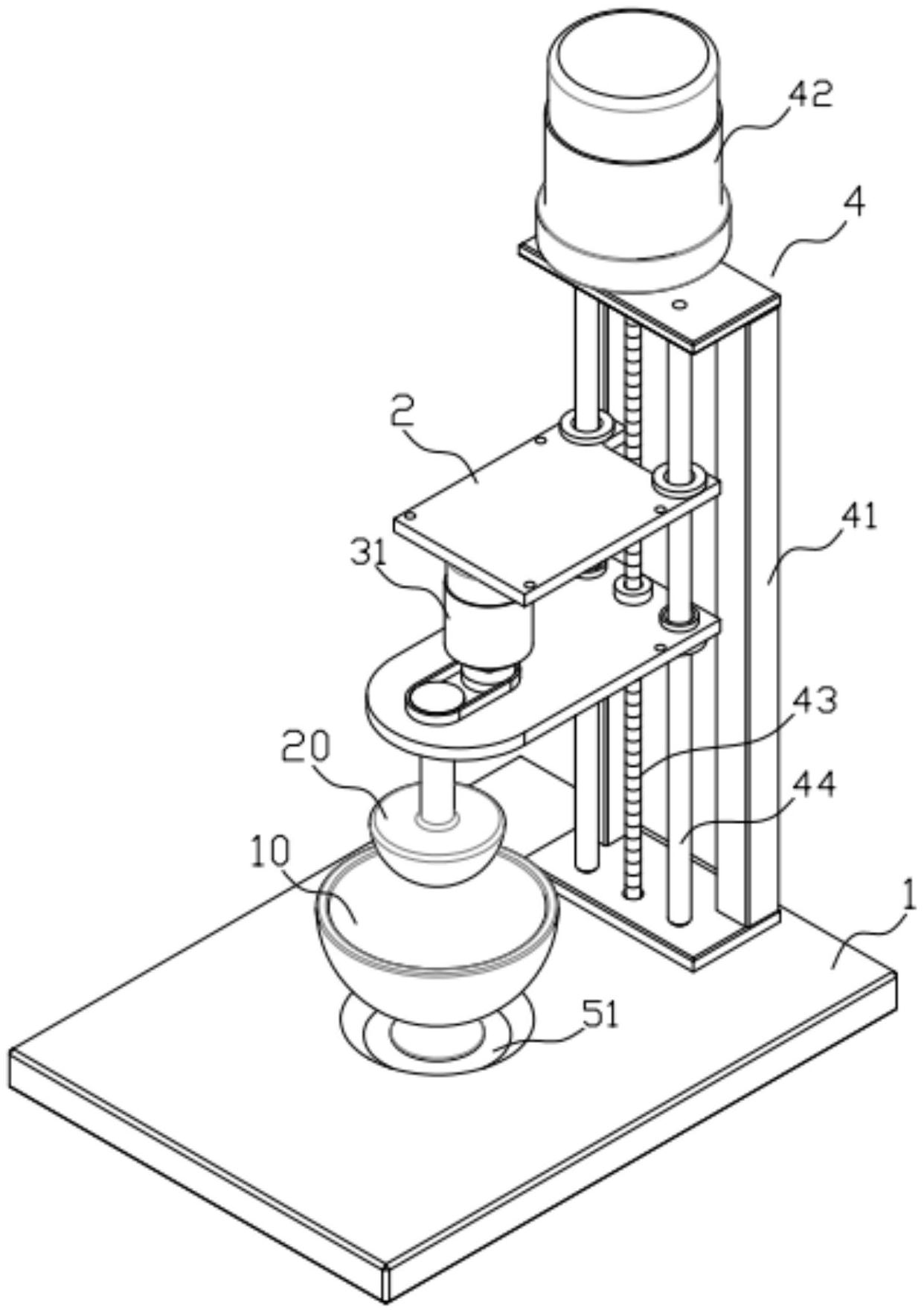 本实用新型涉及片剂检验辅助设备技术领域,公开了一种麦绿素片剂磨粉机构,包括用于放置研钵(10)的底座(1)以及固定钵杵(20)的固定架(2),还包括用于带动钵杵(20)旋转的驱动组件(3)及用于带动钵杵(20)升降的升降组件(4),所述驱动组件(3)包括安装于固定架(2)上的旋转电机(31),旋转电机(31)通过齿轮链条结构与钵杵(20)连接,旋转电机(31)工作带动钵杵(20)旋转以实现快速磨粉;该磨粉机构结构简单,可以配合实验室现有研钵和钵杵使用实现快速磨粉,磨粉效率高。