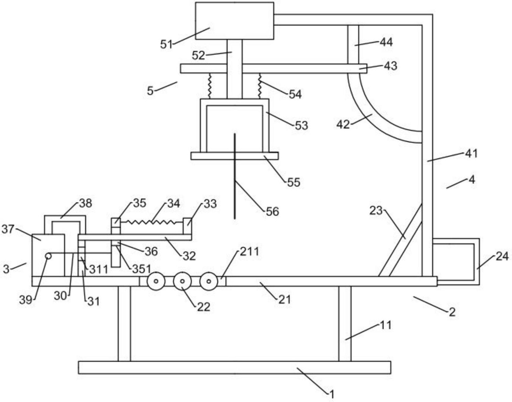 一种人参切片装置,包括底板、支撑板装置、推动装置、支架装置、切片结构,底板上设有第一支撑杆,支撑板装置包括支撑板、第一滚轮、第一固定杆及第一支架,推动装置包括第一竖杆、第一横杆、第二竖杆、第一弹簧、推板、滑块、电机、输出轴、第二支架及拉线,支架装置包括第三支架、第二固定杆、定位杆及第三固定杆,切片结构包括电缸、位于所述电缸下方的推动杆、位于所述推动杆下方的第四支架、位于所述推动杆左右两侧的第二弹簧、位于所述第四支架下方的固定板及设置于所述固定板上的切割刀。本实用新型能够对人参进行有效的切片作业,切片效率高,并且人工劳动强度低,能够很好的满足大规模人参切片的需要。