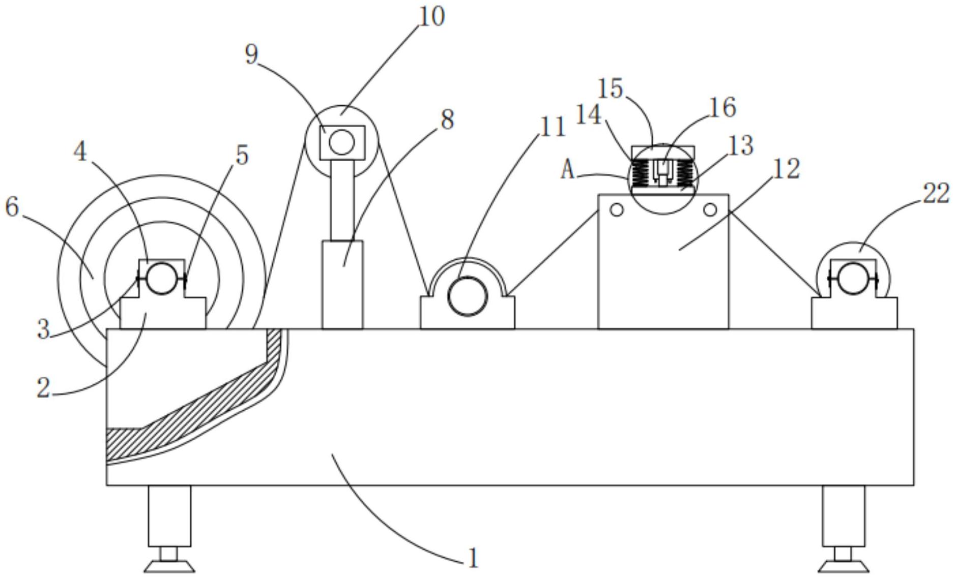 本实用新型公开了一种PE保鲜膜的绿色生产专用制袋机,包括底座。通过铰链和卡扣在下固定座上部活动连接上固定座,通过转轴将保鲜膜卷放置在底座上部,利用电机带动转轴转动,再利用第一电动推杆支撑固定块,将第一转轴和固定块转动连接,将转轴座固定连接于底座上表面,将针头和热封条通过支撑架固定于顶板,利用弹簧和第二电动推杆将顶板垂直连接于垫板上部,将垫板放置于支架上表面,最后将收卷装置放置于底座上部,可以将保鲜膜卷封边和截段同时进行,一定程度提高效率,且便于操作,将器械整合至同一底座上,灵活性增加,且通过第一电动推杆来推动第一转轴的升降,在使用过程中,可以更加方便的调节保鲜膜的是松紧度。