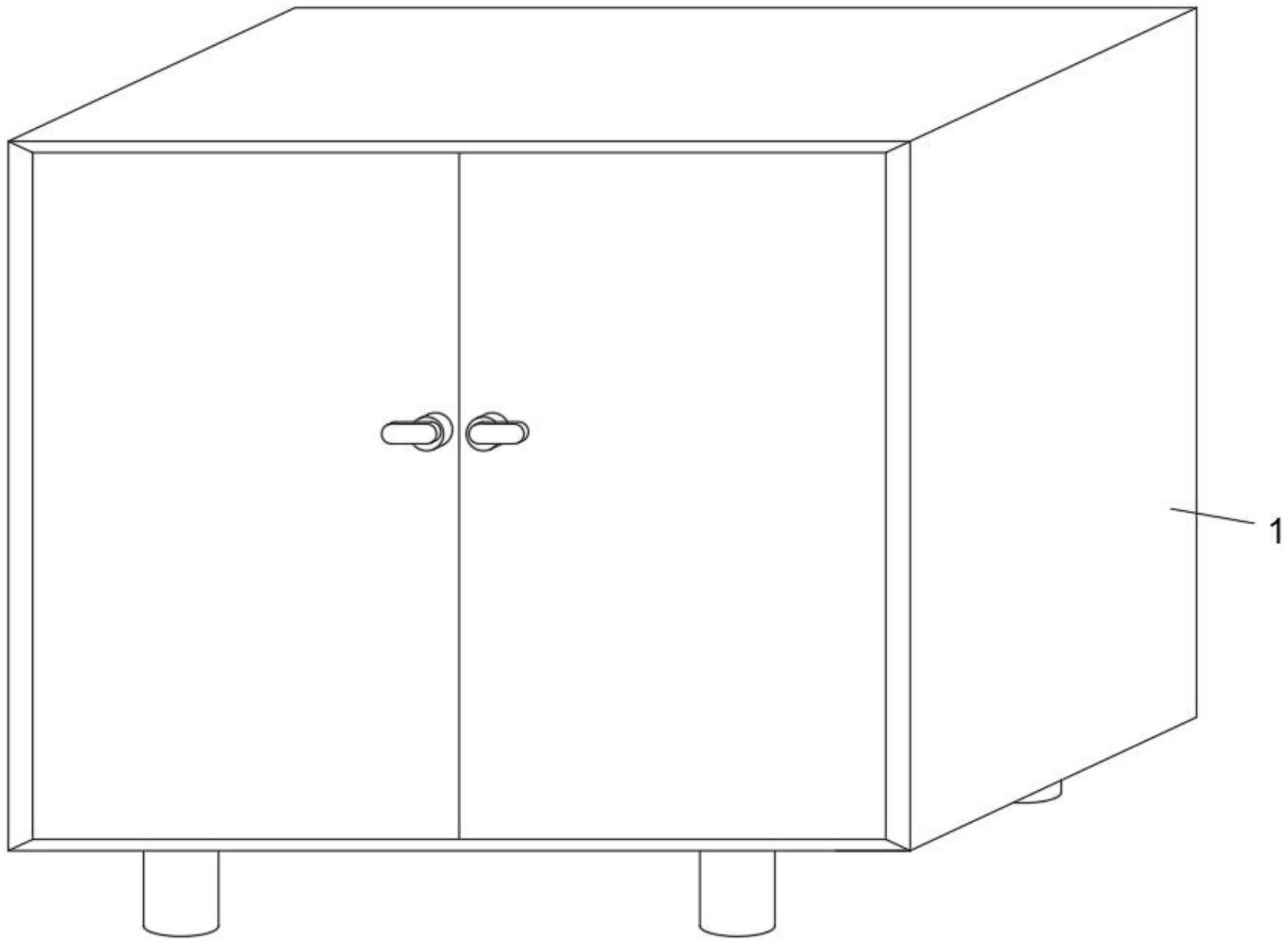 本实用新型公开了一种安装于柜体内部的高效蟑螂捕捉器,涉及高效蟑螂捕捉器领域,本实用新型包括柜体和活动设置在柜体内部的捕捉机构,捕捉机构通过安装机构和柜体内部连接,捕捉机构包括捕捉盒、遮挡片、绝缘块、电网、放置板、U形把手和开关按钮,安装机构包括集虫盒、限位卡块组、抽屉、限位滑槽块和滑块。本实用新型为一种安装于柜体内部的高效蟑螂捕捉器,便于捕捉盒的安装与拆卸,便于引诱剂槽内部引诱剂的更换避免了引诱剂长时间使用后气味消失,从而对蟑螂的引诱效果产生影响,引诱剂槽内部的引诱剂通过孔槽向外散发气味,引诱蟑螂通过进入捕捉盒内部且无法外出,使蟑螂消灭的更多更彻底,且更换较为简单方便,效率更高。