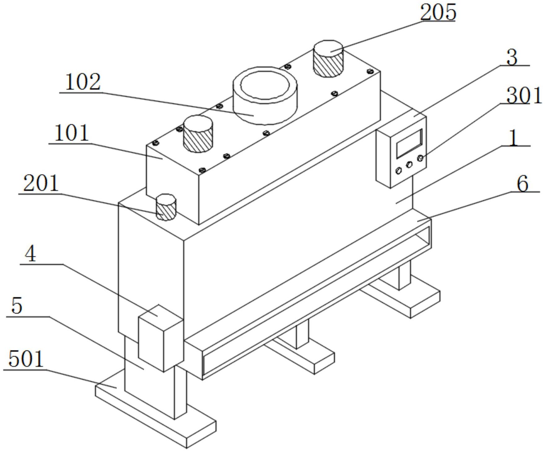 本实用新型公开了一种瓦楞原纸生产用流浆箱,包括下箱体、过滤板和匀浆板,所述下箱体的内壁固定安装有第一电机,所述第一电机的输出端固定连接有滚珠丝杆,所述滚珠丝杆的外壁贯穿安装有滑动板,所述上箱体的顶部固定安装有第二伺服电机,所述第二伺服电机的输出端固定连接有搅拌杆。本实用新型通过安装有过滤板、搅拌杆,启动第一电机开始转动,带动搅拌杆转动,避免纸纤维沉淀结团,启动第二伺服电机,第二伺服电机转动带动滚珠丝杆转动,滚珠丝杆转动使移动板向下移动,带动堵块向下移动,将滤孔露出,对纸浆进行过滤,通过安装搅拌杆和过滤板,对纸浆进行搅拌和过滤,有利于提高瓦楞原纸的成品品质。