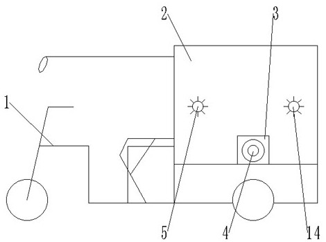 本实用新型公开了一种电动散料装置,包括电动车、料仓;所述料仓设置在电动车上方;所述料仓前侧设置有出料口,所述料仓上侧设置有进料口;所述料仓内侧设置有第一搅拌轴和第二搅拌轴;所述料仓下方设置有输送轴,所述输送轴一端设置有第一螺旋绞龙,另一端设置有第二螺旋绞龙;所述料仓下方设置有散料机构;所述散料机构轴线与输送轴轴线垂直设置;所述输送轴内侧设置有切割机构。通过设置切割机构,能够对缠绕在输送轴上的纤维饲料进行清理,清理效果较好,使用方便,提高了装置的工作效率,改善了装置的工作效果。