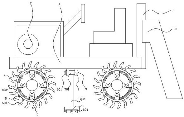 本实用新型公开了一种便于移动的插秧机,属于插秧机技术领域,包括机体,所述机体底部安装有移动轮且移动轮为四个,所述移动轮表面远离机体一侧固定连接有螺杆且螺杆为四个,所述移动轮通过螺杆可拆卸连接有套环,所述套环表面固定连接有翻土板,所述套环表面固定连接有连接板且连接板为四个,其将连接板表面的通孔与移动轮表面的螺杆相对齐并插入,使得机体可以在地里进行移动,作业完成后,只需将套环从移动轮的外表面抽出,使得移动轮接触地面即可正常在路上进行移动,相较于传统的插秧机需要来回更换胎皮的操作方式,方便插秧机进行不同状态下的更换,提高换胎效率进而提高了插秧机的移动便利性。
