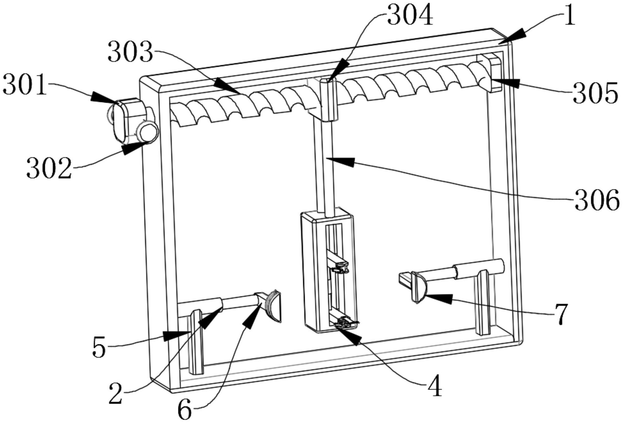 本实用新型公开了一种口腔修复手术牵开器,属于医疗器械技术领域,包括安装框架、侧向伸缩杆、传动机构、可调式双向牵开机构、支撑柱、固定块和槽型撑板,侧向伸缩杆数量为两个,两个侧向伸缩杆分别固定安装在安装框架两侧内壁上,支撑柱固定在安装框架底部内侧壁上,且支撑柱顶部与侧向伸缩杆固定连接,侧向伸缩杆的伸缩端安装有固定块,槽型撑板安装在固定块的一端,传动机构安装在安装框架顶部内侧开设的滑槽内,传动机构顶部固定安装有可调式双向牵开机构,且可调式双向牵开机构位于两个侧向伸缩杆之间,本实用新型能够针对不同患病部位进行手术,不影响医生手术操作,不会损伤口腔,预防了手术过程中病人舌头乱动受到损伤。