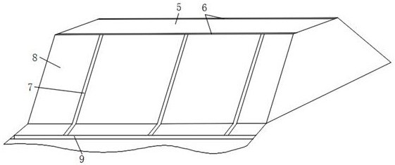 本实用新型提供涵洞与路堤过渡段施工结构,包括:涵洞、路堤、过渡段、基床表层、封闭结构、挡水缘、排水沟和多个导水槽。路堤和所述涵洞间隔设置。过渡段设置于所述涵洞和所述路堤之间,以连接所述涵洞和路堤。基床表层覆盖于所述过渡段和所述路堤上,所述基床表层采用B组填料。封闭结构覆盖于所述基床表层上。挡水缘设置于基床表层两侧,且沿所述基床表层延伸设置,所述挡水缘具有水槽。排水沟设置于路堤和过渡段的边坡下部,各所述导水槽沿所述挡水缘的长度方向依次间隔设置,每一所述导水槽分别连通所述挡水缘和所述排水沟。本申请的涵洞与路堤过渡段施工结构设计了导水槽和排水沟结构,完善了排水系统能够解决强降雨对路基坡面的冲刷问题。