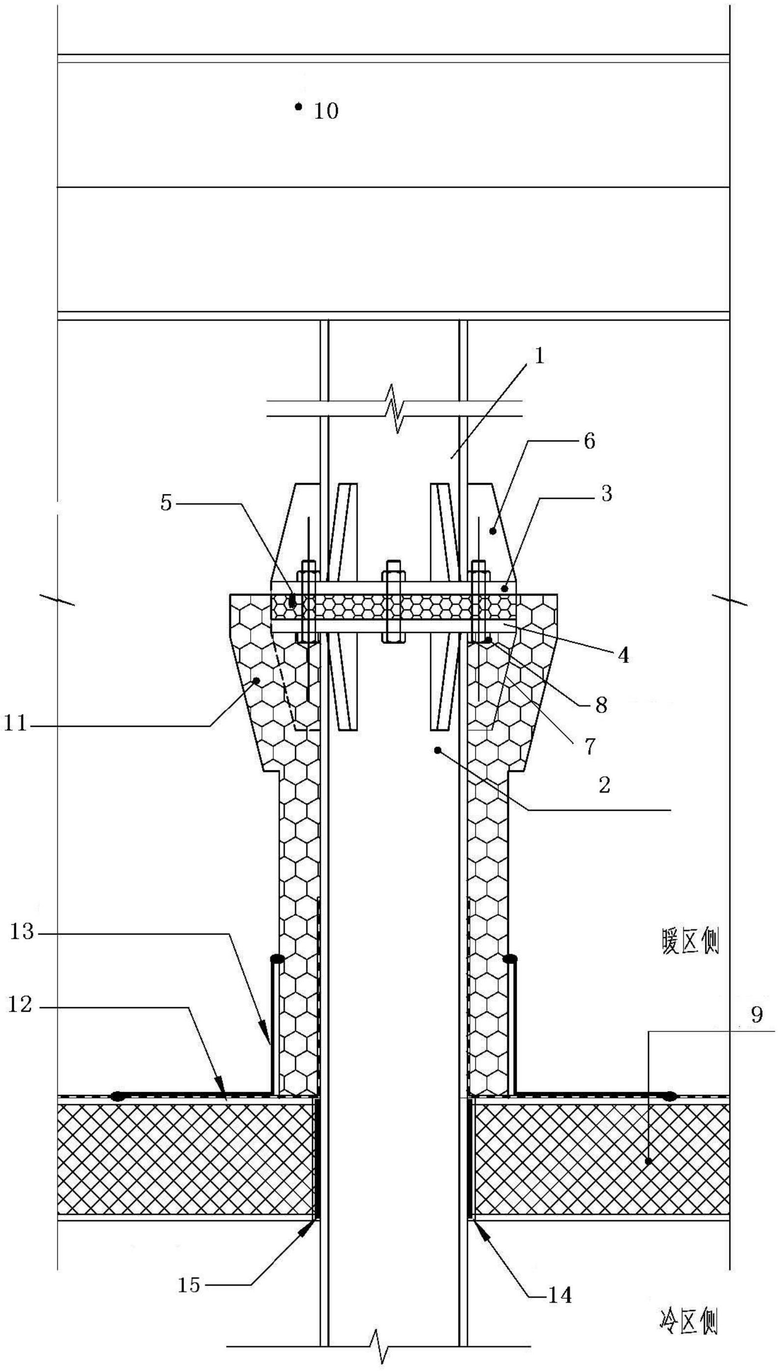 一种室内冰雪乐园马道吊杆穿保温的防冷桥构造
