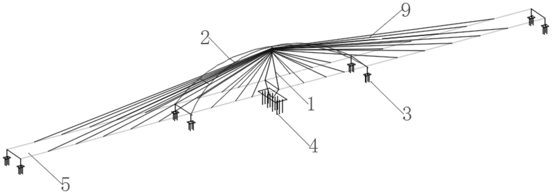 一种带拱肋的独塔双跨扇形双索面斜拉桥