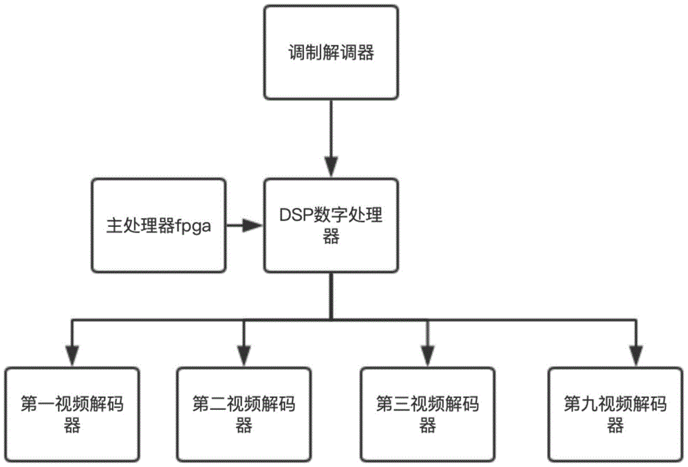 本发明创造提供了一种多路视频解码器,包括主处理器FPGA、数字信号处理器DSP、调制解调器,所述的主处理器FPGA、调制解调器分别与数字信号处理器DSP连接。本实用新型所述的使用多个视频解码器,从而使移动设备即能拥有更好的画质,在观看监控录像时随意设置视频播放进度及速度,带来更好的用户体验,又能保证视频解码的稳定性,不掉帧,不失真。