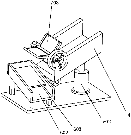 本实用新型提供一种火花塞防磕碰攻螺纹机下料装置,涉及火花塞加工输送技术领域,包括垫板,垫板的上端外壁固定连接有支撑架,支撑架的上端外壁设有顺料滑槽,顺料滑槽的底端外壁滑动连接有调节装置,调节装置的底端外壁与垫板固定连接,顺料滑槽内壁靠近左侧端口的位置转动连接有缓冲装置。本实用新型,攻丝完的火花塞沿着顺料滑槽在重力作用下滑动,火花塞撞击缓冲网,利用缓冲网对火花塞的滑动速度进行缓冲,通过缓冲网带动安装框使安装框带动转轴转动,使转轴带动三角板转动,利用三角板带动摩擦块在减速环内部滑动,利用导料槽上端的缓冲垫对掉落的火花塞进行缓冲,避免火花塞与导料槽发生刚性碰撞。