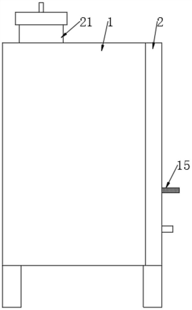 本实用新型公开了一种茶油加工用的油籽保鲜处理装置,具体涉及茶油油籽保鲜技术领域,包括箱体和进料管,所述箱体内部设有除湿机构;所述除湿机构包括竖板,所述箱体内部固定设有第一隔板,所述第一隔板底部设有抽盒,所述抽盒底部设有第二隔板,所述第二隔板固定设在箱体内部,所述第二隔板与箱体内部底端中间设有多个加热棒,所述抽盒一侧设有第一出气管,所述第一出气管一端固定设有抽风机,所述第一出气管外端固定设有单向阀。本实用新型通过利用第一隔板将抽盒与箱体内部的油籽隔开,并利用加热棒和抽风机对抽盒进行烘干,从而能够降低抽盒自身的湿度,以防止其对箱体内部油籽的影响,从而能够有助于更好的保存油籽。