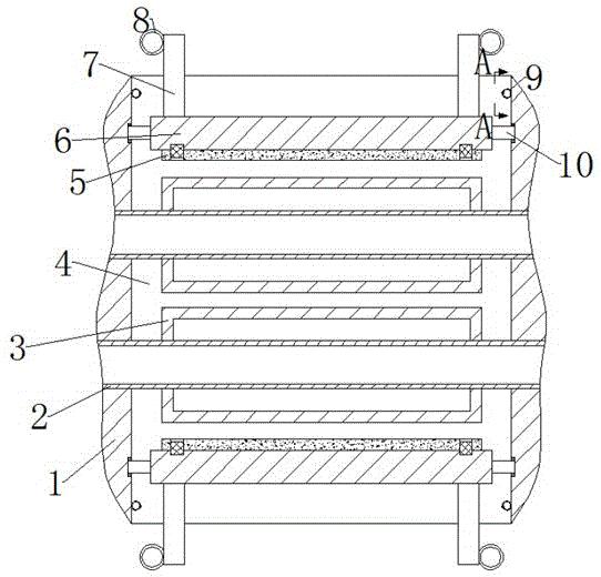 本实用新型公开了一种破壁机出料装置,属于酶学或微生物学装置技术领域,包括机体、安装板、水冷装置和弹簧;所述机体内部设有前后贯穿且开口向上的破壁空间,所述破壁空间内部转动设置有两根转动轴,所述两根转动轴的左端穿过破壁空间的左端壁固定连接有水冷装置,且该两根转动轴轴体上均固定套接有破壁辊筒,所述两根转动轴远离彼此的一侧转动设置有安装板,所述安装板靠近对应破壁辊筒的端面螺丝固定连接有刮料板,该装置有效的解决了破壁过程中产生的摩擦热,从而保障灵芝孢子粉的营养成分不被破坏,确保加工质量,同时,实现对粘贴在破壁辊筒表面的灵芝孢子粉进行清除,实现加工效率的提高,解放操作人员,增强经济性。
