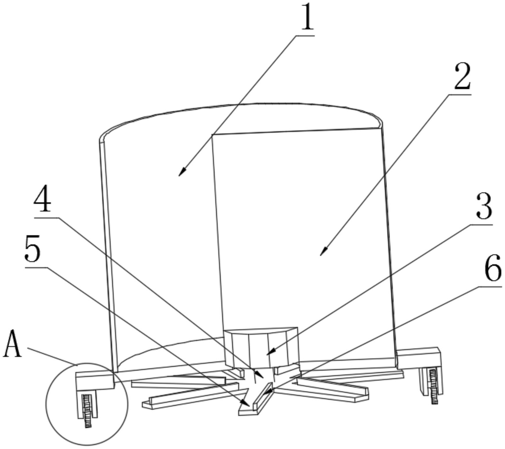 本实用新型涉及菌草切割领域,且公开了一种菌草旋转切割装置,包括储料槽,所述储料槽一侧固定安装有防脱落板,所述储料槽内壁底部固定安装有电机,所述电机底部中心处活动安装有转动杆,所述转动杆底部固定安装有切割片,所述切割片一侧固定安装有限位杆,所述储料槽外壁顶部一侧固定安装有开关。该种菌草旋转切割装置,首先按动开关启动电机带动转动杆的转动,切割片也进行转动,对生长后的菌草进行切割,切割后的菌草通过限位杆转动带动至储料槽中,从而达到了收集切割后菌草的效果,推动把手推动装置继续向前切割菌草,防止切割片触碰地面影响机器运转,滚轮外壁的凸块插入泥土推动车向前,从而达到保护菌草根部的效果。