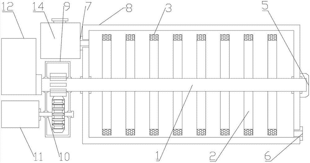 本实用新型公布了一种导热油加热器,它包括导热油加热罐、电动机和电加热装置,导热油加热罐体内部设置有搅拌轴体,搅拌轴体两侧设置有支轴,支轴末端固定设置有干燥块;搅拌轴体通过传动装置与电动机输出轴实现传动连接;搅拌轴体和支轴的内部设置有加热轴;本实用新型提高了导热油的加热效率,同时可以避免新增导热液形成水汽堵塞过滤器而导致循环泵抽空,使得导热油加热器装置运行更加稳定高效。