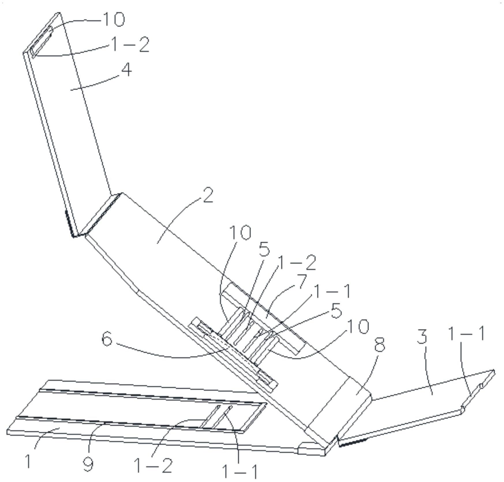 本实用新型尤其涉及一种钢丝开袋模板,包括第二模板和分别与第二模板活接的第一模板、第三模板和第四模板,第一模板位于第二模板下方,第三模板和第四模板均位于第二模板上方;第一模板和第二模板上均贯穿有第一嵌线条缉线槽和第二嵌线条缉线槽,第三模板上也贯穿有第一嵌线条缉线槽,第四模板上也贯穿有第二嵌线条缉线槽,当第一模板和第三模板均折叠至第二模板上时,其第一嵌线条缉线槽依次重合,当第一模板和第四模板均折叠至第二模板上时,其第二嵌线条缉线槽依次重合;第二模板上方设有两根钢丝,两根钢丝设在第一嵌线条缉线槽和第二嵌线条缉线槽的两侧,两根钢丝与第二模板之间具有嵌线条间隙。