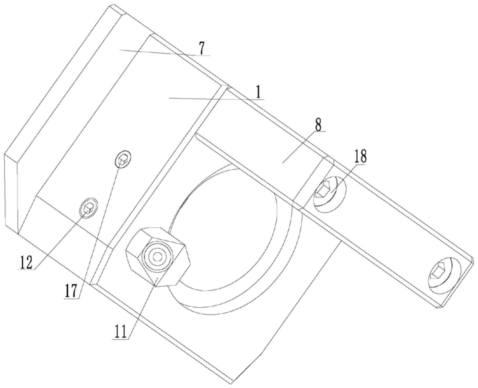 本实用新型提出了一种免拆卸注油型轴承盒及应用该免拆卸注油型轴承盒的刀座,涉及轴承技术领域,包括轴承盒体,轴承盒体内设置有通槽,通槽内限位安装有组合轴承,组合轴承上设有环形润滑油通道,组合轴承上设置有注油孔,在轴承盒体的两侧壁上均设置有一限位板,轴承盒体上安装有安装板,轴承盒体上设有第一通孔,第一通孔与环形润滑油通道相连通,轴承盒体上设有第二通孔,第一通孔与第二通孔连通,第二通孔内螺纹安装有润滑油嘴,第二通孔内安装有丝堵,本实用新型实现了在不拆卸组合轴承与轴承盒的情况下,即可对组合轴承进行注油润滑,避免了操作人员的停机维护,从而提高了设备的运行效率。