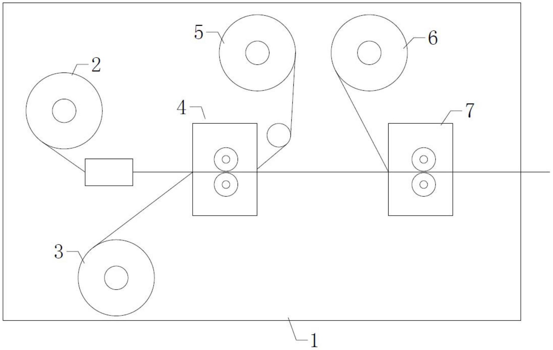 本实用新型涉及温感元器件生产技术领域,具体涉及一种温感模块生产设备,包括机架、设于机架的铜箔放料装置、第一膜料放卷装置、切料装置、铜箔收卷装置、第二膜料放卷装置、以及复合成型装置;铜箔放料装置用于将铜箔放料至切料装置,第一膜料放卷装置用于将第一膜料放卷至切料装置,切料装置用于在铜箔上切出温感模块的第一电极和第二电极,切料装置用于将第一电极和第二电极辊压覆合在第一膜料上。本实用新型解决了现有对温感模块制备难度高,效率低的问题,整体制造效率高,适合大批量生产,大大降低生产成本。