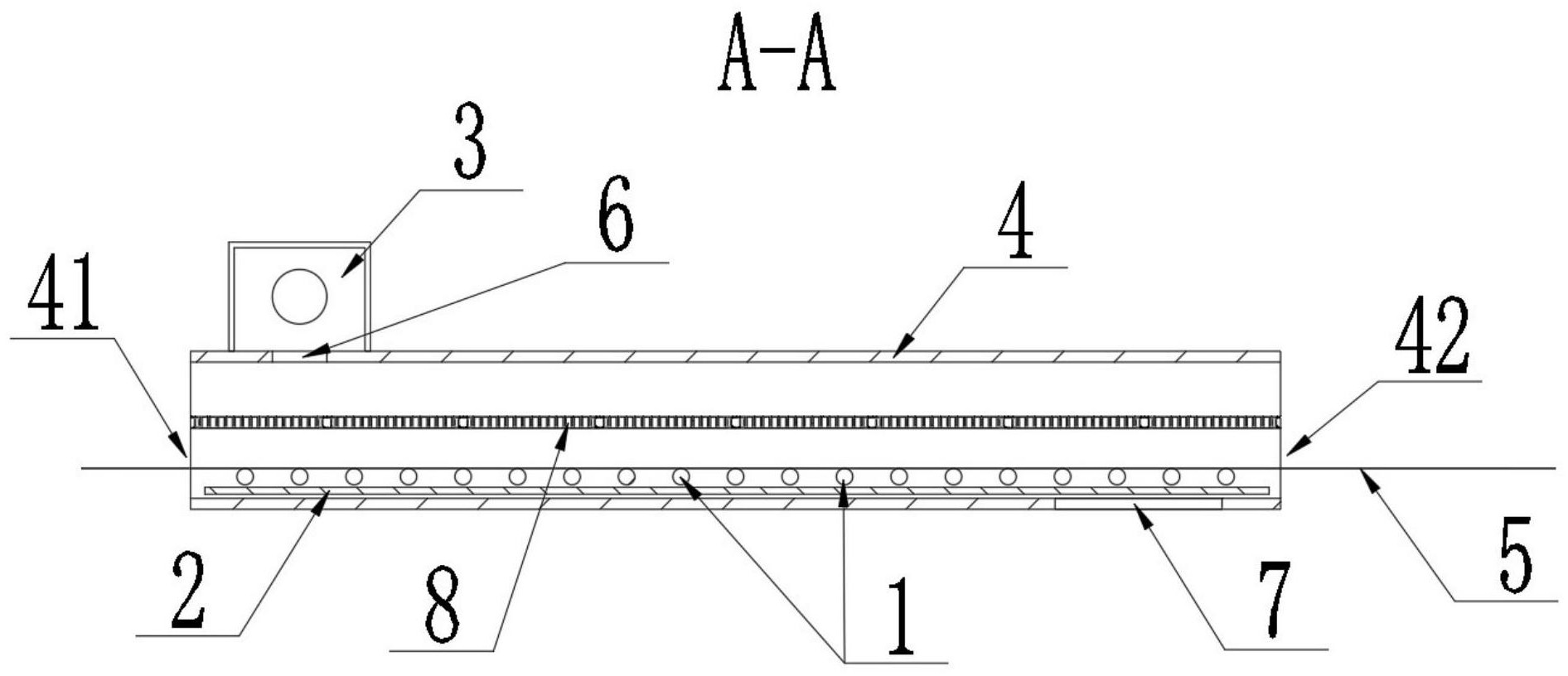 本实用新型涉及锂电池生产设备技术领域,具体公开了一种储能式涂布机干燥箱,包括极片托辊、空气加热管、风机、隔热箱体和相变储能板,隔热箱体的一端设有涂布极片入口,另一端设有涂布极片出口,极片托辊和空气加热管均水平位于隔热箱体内,空气加热管位于极片托辊下方,风机安装于隔热箱体上,风机通过进风法兰引入新风进入隔热箱体内,并通过引风出口法兰排出湿度增加的空气,相变储能板设置于隔热箱体内,且位于极片托辊的上方。本实用新型通过相变储能板的设置,能够对未有效利用的热量进行储能,并对涂布极片形成辐射传热,使得浆料中的水分受到对流换热、辐射传热的双效作用,加快干燥速度,同时节约能耗。