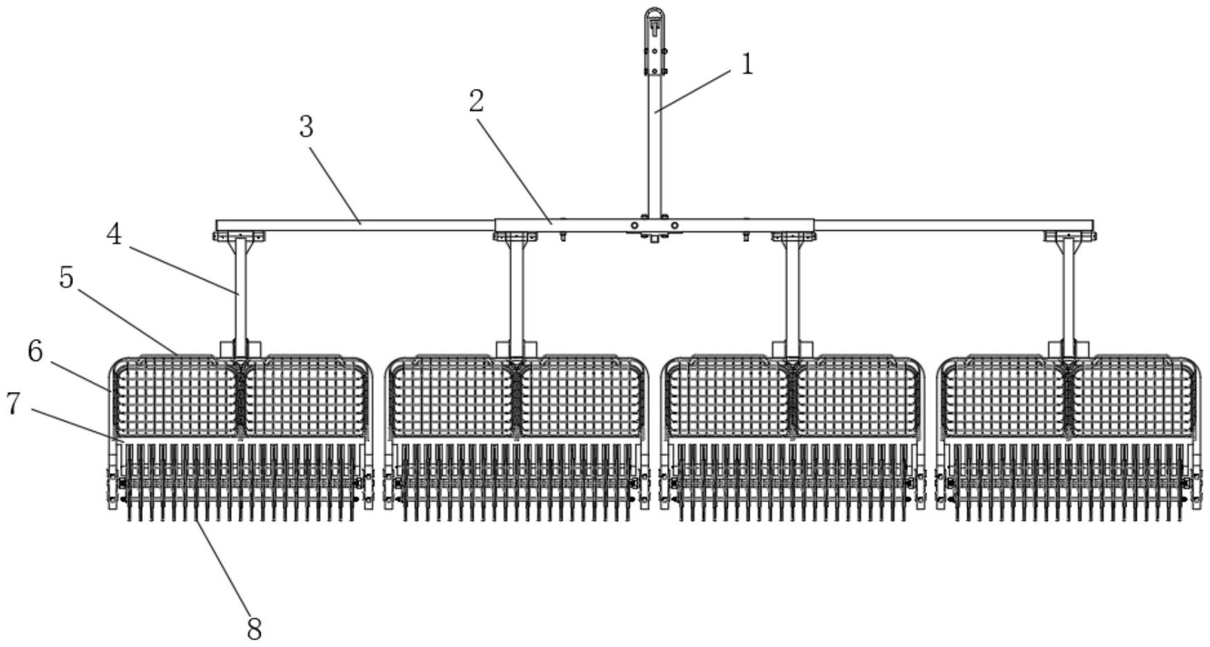本实用新型公开了高尔夫球收集器,包括牵引组件、收集组件以及连接杆,所述牵引组件通过连接杆与收集组件活动连接,所述收集组件包括安装架、滚动收集件和分离存放件,所述安装架端部安装有滚动收集件,所述滚动收集件的一侧设置有分离存放件,所述分离存放件安装在安装架的内侧,牵引组件上通过连接杆连接多个收集组件,收集组件通过相邻两个安装在轮毂架的橡胶轮随着中心转轴在地面行走,将地上的高尔夫球夹紧,随着橡胶轮一起转动,然后被对应的剔爪剔出,沿着剔爪滚至网框篮内收集,更加的方便高效,并且连接杆的两端分别与牵引组件和收集组件之间通过转轴连接,能够适应与地面凹凸不平的情况,保证收集组件始终紧贴在地面转动。