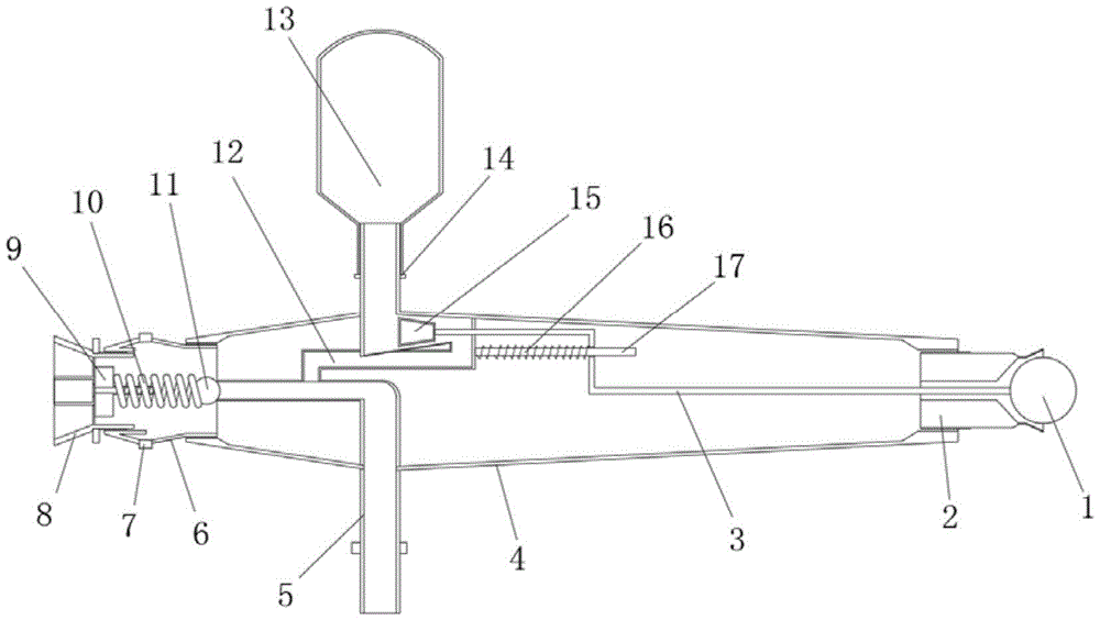 本实用新型公开了一种除醛仪防漏液喷头,包括壳体,所述壳体的一侧转动连接有端盖,端盖的一侧转动连接有按压球,按压球的一侧通过螺栓固定有推杆,所述壳体的一侧设有进料管,进料管的一端套接有存料仓,所述进料管的两侧焊接有垫片,垫片与存料仓相接触,且进料管的一侧插接有堵头,堵头与推杆固定连接,所述推杆的一侧焊接有导向杆,导向杆的一侧套接有第二弹簧,第二弹簧的一端与推杆固定连接,第二弹簧的另一端与进料管固定连接。本实用新型的优点是能够解决人们忘记关闭或没关紧喷头时就会出现漏液的问题,节约资源,其次可以对喷头的出水速度以及喷洒面积进行调节,灵活性好,提高了装置的灵活性。