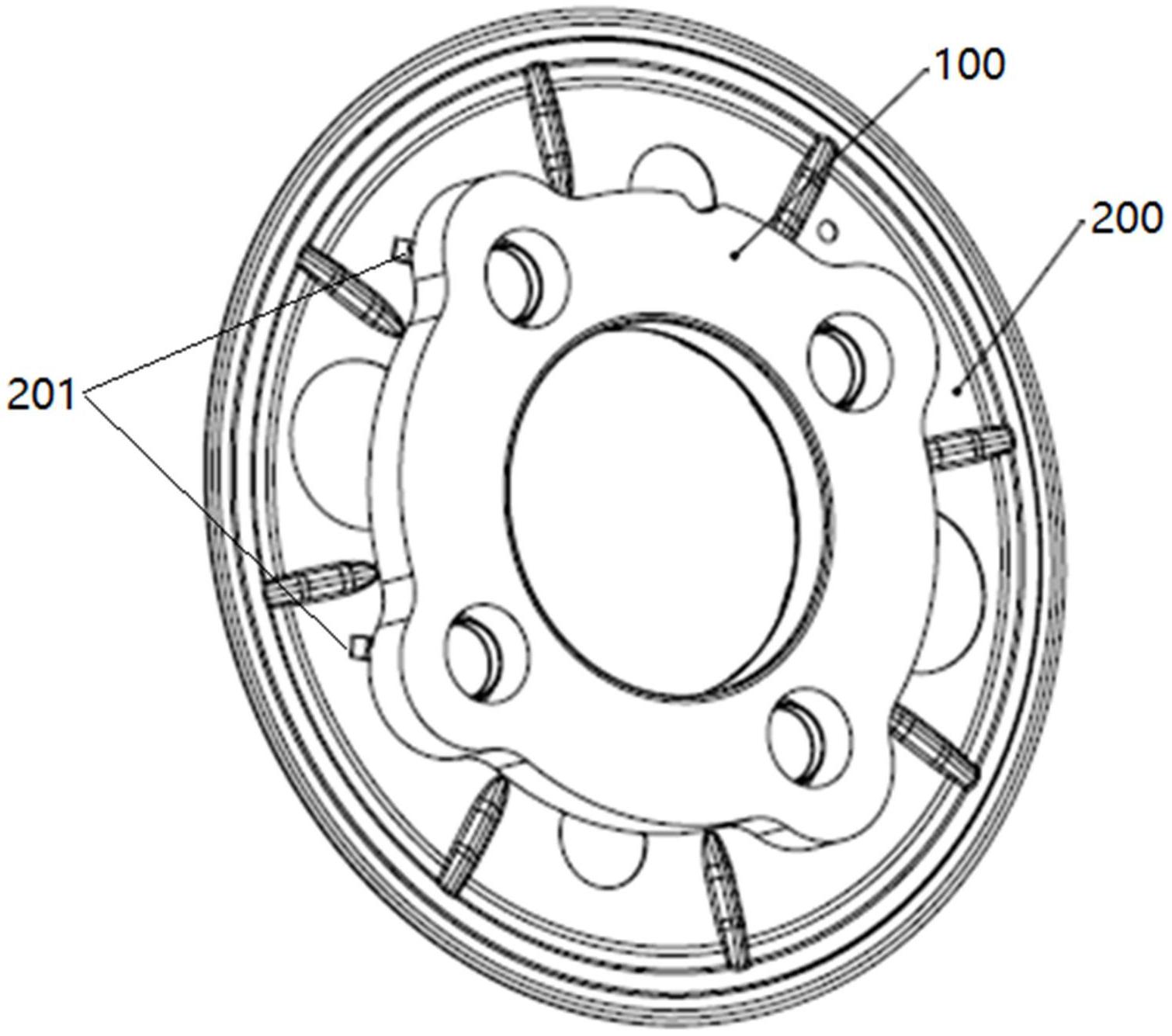 本实用新型涉及新能源汽车领域,具体涉及一种电机转子平衡组件及电机;其电机包括平衡盘和盖板;其镂空的盖板上设置有限位凸起、凸起孔和多根加强筋,其限位凸起、凸起孔和加强筋位于盖板的同一侧,其加强筋设置在平衡盘和盖板重叠区域以外部分;其平衡盘上设置有与盖板上的凸起孔位置相对应的通孔。使用时,其平衡盘通过盖板上的限位凸起固定,同时盖板上的凸起孔插入平衡盘上的通孔来固定平衡盘在盖板上的位置;其盖板和平衡盘可分别采用不导磁不锈钢和钢材制成;该结构可低成本实现,其加强筋设计可使盖板在较薄的情况下具有较高的刚性,可满足复杂环境下的使用需求。