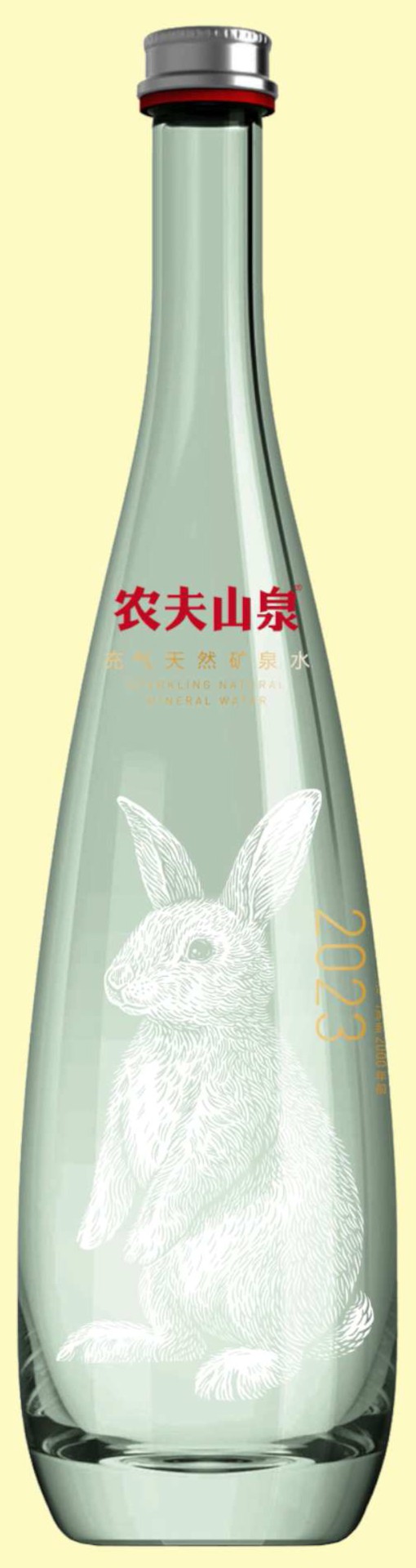 1.本外观设计产品的名称:标贴(兔年玻璃瓶水)。2.本外观设计产品的用途:用作标贴。3.本外观设计产品的设计要点:在于形状与图案的结合。4.最能表明设计要点的图片或照片:主视图。5.本外观设计为平面产品,且背面无设计要点,故省略其他视图。6.主视图中的灰色区域为透明的。
