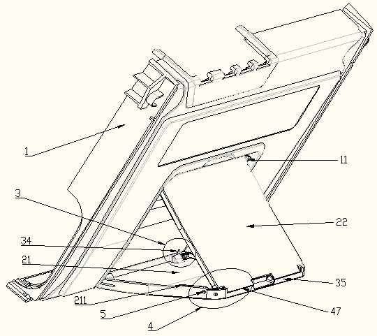 本发明公开了一种光时域反射仪用支撑结构及包含该结构的光时域反射仪,包括后壳和支撑部,所述支撑部包括盖板支架板和内支架板;所述盖板支架板与所述后壳通过盖板转轴部连接,所述内支架板与所述盖板支架板通过内板转轴部连接;所述内支架板的表面面积小于所述盖板支架板的表面面积。本发明可解决现有光时域反射仪支撑不稳定的弊端,提供一种低成本、结构稳固且可以自动打开支撑的光时域反射仪用支撑结构及光时域反射仪。