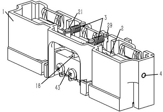 本实用新型属于断路器技术领域,具体涉及一种塑壳式断路器的过载报警不脱扣装置。一种塑壳断路器过载报警不脱扣装置,包括双金属元件和设于支架上的基座,基座内可旋转地设有牵引杆,牵引杆上设有拨爪,基座上还固定设有微动开关,微动开关设于拨爪下方,牵引杆上设有与双金属元件对应的驱动片,双金属片受热后向驱动片弯曲。采用双金属元件反向动作的结构原理,受热时双金属元件向牵引杆弯曲,结构紧凑,可将本装置布置在断路器的后端,杜绝与断路器机构件的交接,大大提高产品的稳定性,尤其适用于结构紧凑的塑壳断路器上。