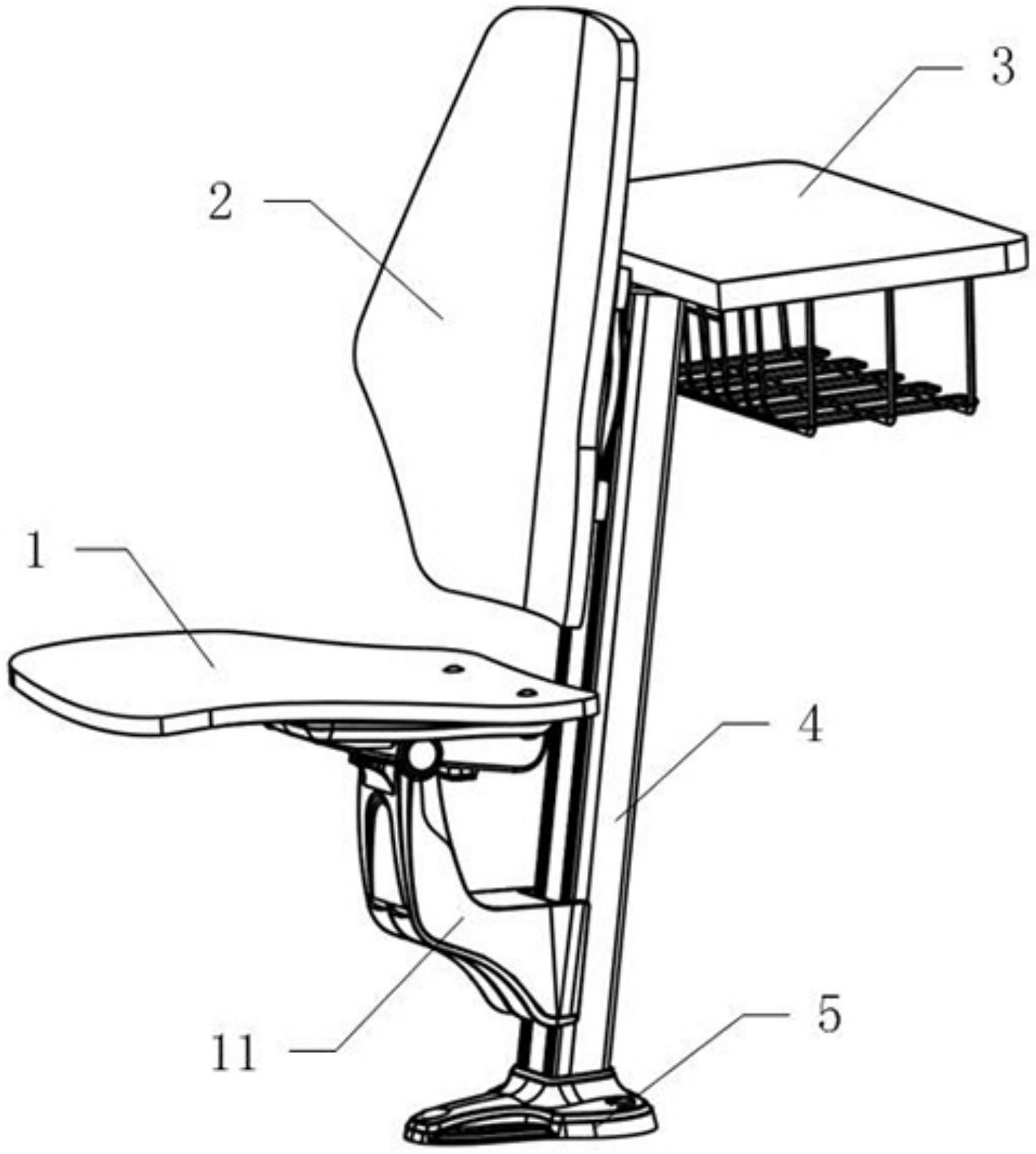 本实用新型提供一种可调式课桌椅,涉及教学设施领域。该课桌椅包括座板、椅背、桌板和固定于地面的底座;其中还包括倾斜向后设置的支撑柱;所述底座固定设于所述支撑柱的底部;所述桌板固定于所述支撑柱的顶部;所述椅背可滑动设于所述支撑柱的前侧面且位于所述桌板的前面;所述座板可滑动设于所述支撑柱的前侧面且位于所述椅背的下方。本实用新型结构独特且稳定,实现了椅背和座板的可调节功能,可针对教学场所中台阶高度不一的情况对座板、椅背进行高度调整,以提高使用舒适性。