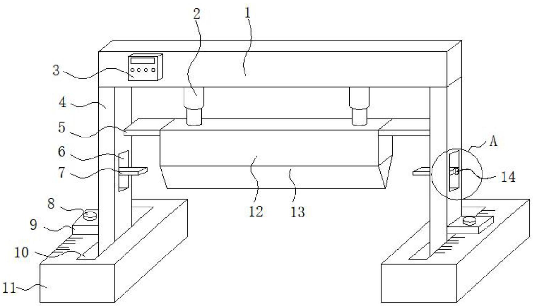 本实用新型涉及浸渍纸生产技术领域,尤其是一种精度可调的浸渍纸切纸机构,针对现有技术中的浸渍纸切纸机构调节不方便的问题,现提出如下方案,其包括两个底板、活动安装在两个底板顶部的竖直板、固定在竖直板顶部的横板、安装在横板底部的两个电动伸缩杆、固定在两个电动伸缩杆底部的刀具座和固定在刀具座上的切刀,两个所述底板的顶部均开设有滑槽,两个竖直板的底部分别延伸至两个滑槽的内部与两个滑槽滑动连接,两个竖直板上均安装有固定竖直板的锁定机构。本实用新型结构合理,操作简单,不仅可以方便的对切刀的位置进行精确的调节,而且可以避免电动伸缩杆工作时产生的波动对切割精度带来的影响,易于推广使用。