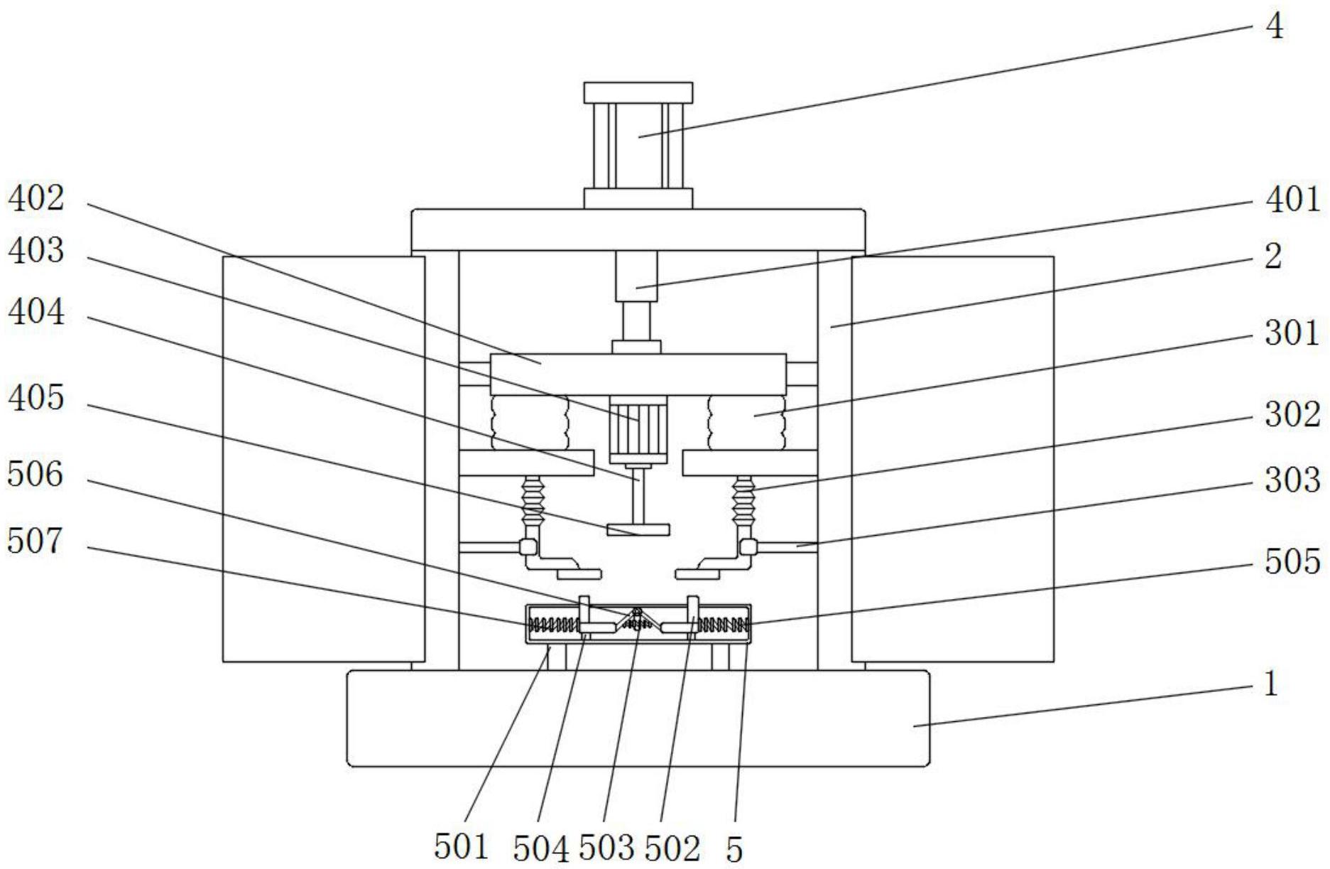 本实用新型公开了一种加工中心用自动去毛刺装置,包括底座、箱体、固定板和液压缸,所述底座的顶部焊接有箱体,所述箱体的顶部安装有液压缸,所述箱体的内壁焊接有固定板,所述底座的顶部安装有支撑杆,所述支撑杆的顶部焊接有工作台,所述箱体的背面焊接有放置箱。本实用新型通过安装夹板,利用推动夹板使夹板可对第二弹簧进行挤压,利用夹板的移动方便对活动杆进行拉扯,通过夹板对活动杆的拉扯使活动杆可利用滑槽在工作台的内部上下进行移动,利用活动杆的移动可对第一弹簧进行拉扯,从而使活动杆的长度可方便进行调节,使工件放置在去毛刺时较为固定,避免工件加工时发生位置偏。