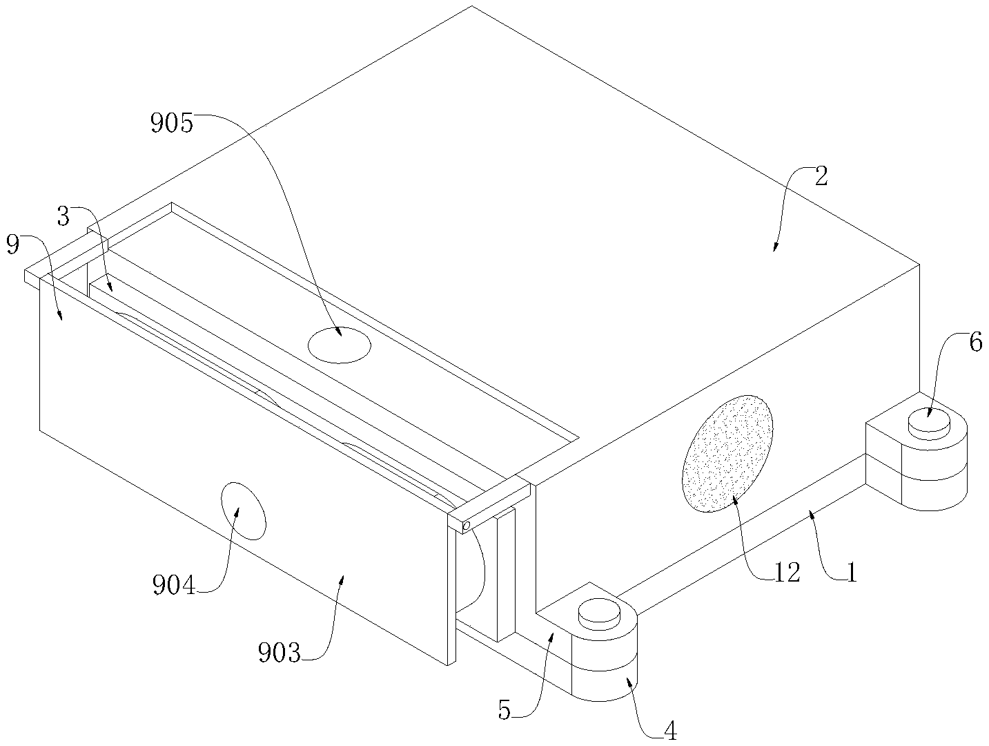 本实用新型公开了一种汽车控制器用壳体,包括第一壳体、第二壳体和控制器主体,第一壳体上设置有第二壳体,第一壳体和第二壳体之间设置有控制器主体,第一壳体和第二壳体的四个边角均分别固定设有第一安装块和第二安装块。本实用新型通过连接杆和转轴,可以对挡板进行转动,通过橡胶垫,可以使得连接端子处于封闭环境中,通过磁铁块和铁块,配合卡槽,便于控制器主体使用时挡板的收纳,通过该设置,无需使用控制器主体时,使得控制器主体的连接端子处于封闭环境中,避免了连接端子受外界潮湿环境的影响而生锈,提高了控制器主体的使用寿命。