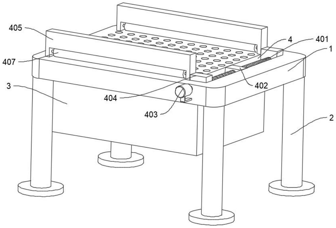 本实用新型公开了加工中心3D雕刻工装,包括工作台,还包括有:夹紧清理机构;工作台的底部固定连接有多个支撑腿,工作台的底部固定连接有收集箱;夹紧清理机构包括有方形槽,工作台的一侧位于方形槽的外侧固定连接有伺服电机,伺服电机的输出端固定连接有螺纹杆,且螺纹杆转动延伸至方形槽的内部,方形槽的内部固定连接有限位板,螺纹杆的外侧壁位于限位板与方形槽内壁之间螺纹连接有螺纹板。本实用新型,通过夹紧清理机构的作用,利用对工件夹紧或取下的同时,对工作台的顶部进行转动擦拭,不需工作人员手动拿取清理工具对工作台上进行清理,从而减少了工作人员的操作步骤,提升了工作人员对工作台上碎屑进行清理的工作效率。