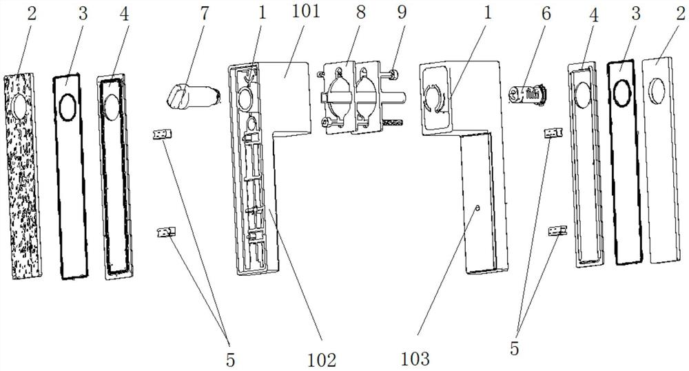 本实用新型公开了一种执手,包括执手基座和面板,其中执手基座可供用户手持,面板可拆卸连接在执手基座的外侧面,执手基座的内侧设有安装部。在使用时,用户可根据自己的喜好选择相应样式的面板安装在执手基座上,当面板磨损或者需要更换时,将旧面板拆下,换上新的面板装上即可,不需更换整个执手,因此维护成本较低。
