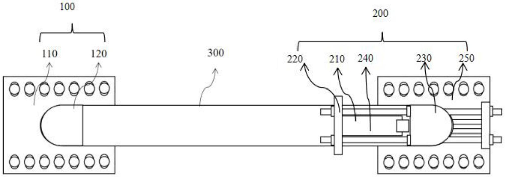 本实用新型公开了一种预应力碳纤维筋张拉系统,属于碳纤维筋张拉领域。它包括固定端以及张拉端,所述张拉端包括相互平行的两张拉螺杆;第一钢板,与两张拉螺杆固定连接;张拉端钢块,与两张拉螺杆滑动连接,用于对碳纤维筋进行张拉时连接所述碳纤维筋,所述张拉端钢块被配置为连接所述碳纤维筋时至少能够使所述碳纤维筋绕过所述张拉端钢块的外周;千斤顶,设置于所述张拉端钢块与张拉端钢块之间,所述千斤顶被配置为能够向所述张拉端钢块施加作用力,以使得所述张拉端钢块在两张拉螺杆上滑行,完成对碳纤维筋的张拉。本实用新型无需再在锚具两端预留操作空间,同时能够减少配套锚具的使用,避免碳纤维筋与夹片、夹片与锚杯易产生滑移。