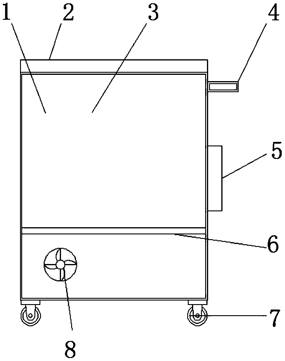 本实用新型公开了一种立式刀剑架,其结构包括本体、防尘罩、柜体、推手、工具箱、固定架,所述本体上设有防尘罩,所述防尘罩与本体相固定连接,所述防尘罩下设有柜体,所述柜体与本体相固定连接,所述柜体右侧设有推手,所述推手与柜体相固定连接,所述推手下设有工具箱,所述工具箱与柜体相固定连接,所述工具箱下设有固定架,所述固定架与本体相固定连接,所述固定架下设有风扇,所述风扇与柜体相固定连接,所述柜体下设有轮子,所述轮子与本体相固定连接,所述防尘罩下设有框架,该立式刀剑架不易生锈腐蚀,同时在箱体上设有风扇,能有效的保证内部的干燥度,便于对刀剑进行简单的维护,延长了刀剑的使用寿命,结构简单,便于实现。