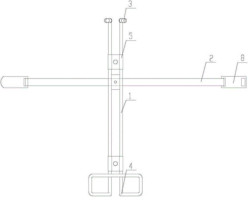 本实用新型公开了一种灭火器支架,包括支架主梁和灭火器绑带,支架主梁的顶部设有夹持部、底部设有支撑部,顶部与底部之间设有至少两块连接板,支撑部包括扇形底托及圆弧状的侧托,灭火器绑带与连接板固定连接。本实用新型的优点是对灭火器底部有更好的支撑保护,牢固地固定灭火器,取放灭火器安全、方便。