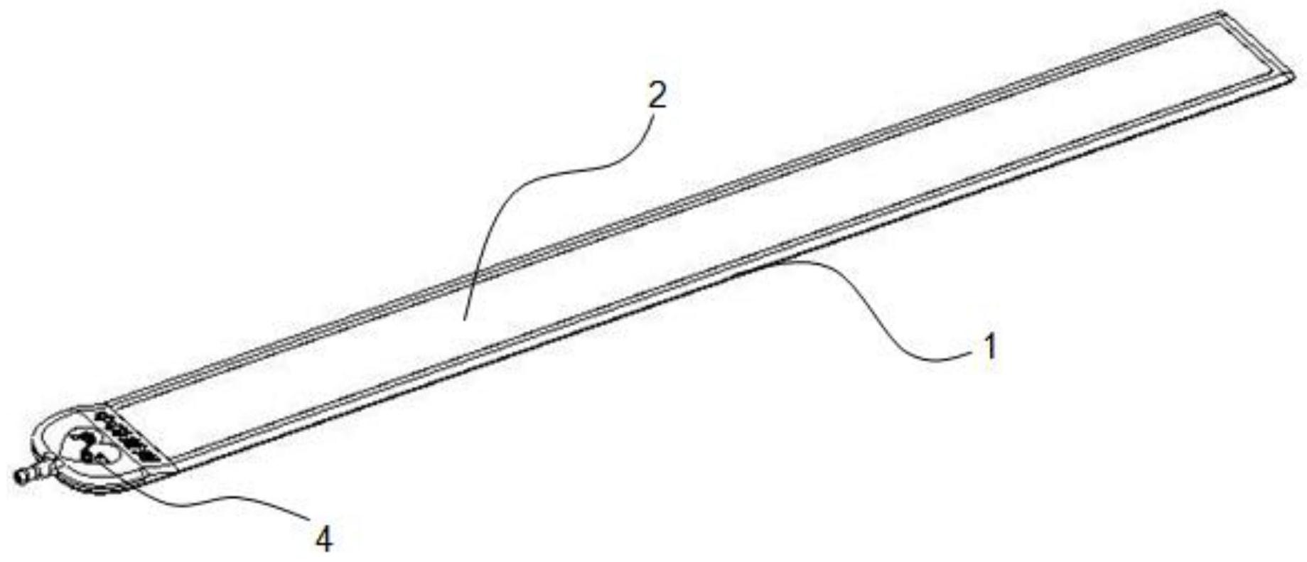 本发明提供了一种无扰式人体生理信号采集带,包括:下片组件、上片组件和压电薄膜,压电薄膜夹持在下片组件和上片组件之间,下片组件的一个端头上设置有信号输出座,压电薄膜的一个端头上设置有信号引出线,信号引出线与信号输出座连接,下片组件边缘处设置有凹槽,与之对应的上片组件边缘处设置有凸起,凹槽内放置有胶水,凸起与凹槽之间通过胶水粘结,下片组件和上片组件之中至少有一个组件与压电薄膜接触的内表面上设置有并排等距间隔分布的齿牙。本无扰式人体生理信号采集带,采用胶粘结构实现信号采集带结构之间的连接,且无需穿戴即可采集人体生理信号,并通过齿牙压触压电薄膜的方式采集体征信号,可以提高采集数据的准确度。