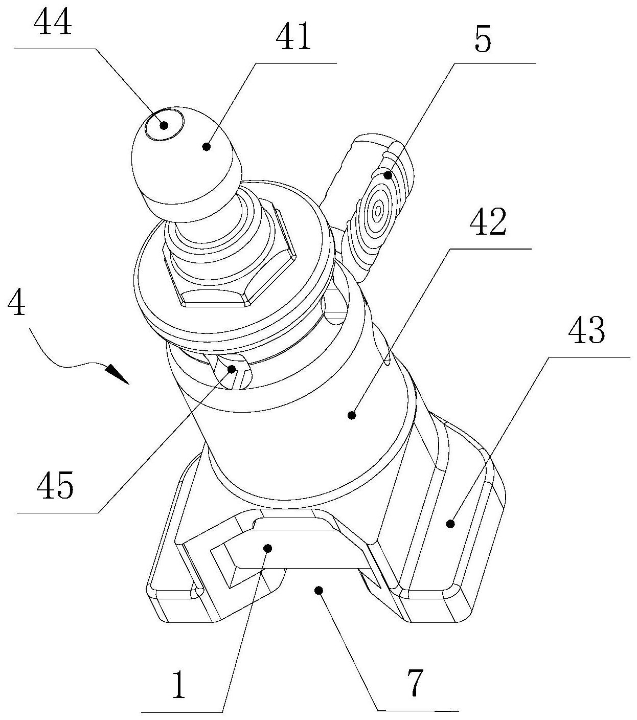 本发明提供一种胫骨托打入取出器,包括基座、弹性元件、凸轮、手柄和锁紧块,所述基座为内部设有空腔的柱形结构,所述弹性元件、凸轮和锁紧块从上到下依次连接置于所述空腔内,所述空腔底部的侧壁上设有与假体外形尺寸匹配的固定槽,所述基座的侧壁上设有导向槽,所述手柄一端穿过所述导向槽与所述凸轮固定连接,沿所述导向槽往复拨动所述手柄,使所述手柄带动所述凸轮转动,从而实现所述锁紧块沿所述基座径向推出或缩回所述固定槽。采用凸轮结构将锁紧块推出或缩回实现假体的锁紧固定,结构简单,锁紧时,只需拨动手柄,操作简单,采用与假体外形尺寸匹配的固定槽使锁紧更加牢固,定位精度更高。