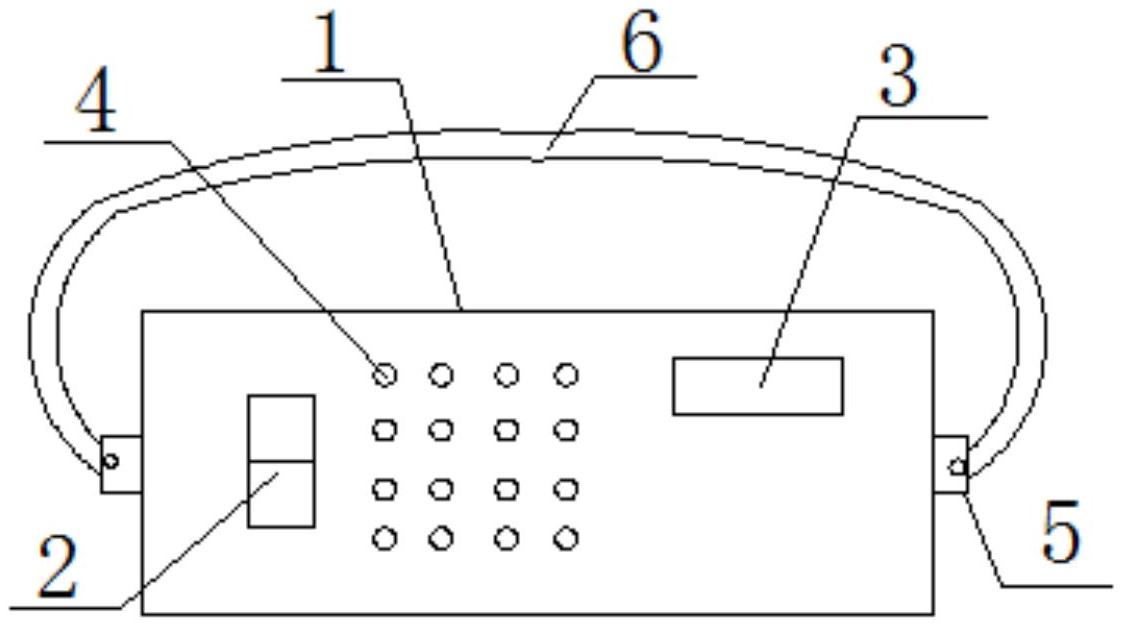 本实用新型属于通讯电源领域,尤其是一种便于携带的通讯电源,针对现有的通信电源不便于携带,同时电源壳体长期在室外使用时,散热孔会积攒大量的灰尘,长时间不清理容易造成堵塞,使得散热效果变差的问题,现提出如下方案,其包括电源壳体,所述电源壳体的一侧设有控制开关和显示屏,电源壳体的一侧开设有多个散热孔,所述电源壳体的一侧内壁上开设有活动孔,活动孔内活动安装有活动杆,本实用新型结构简单,同时设置背带,能够便于携带通讯电源,同时按压活动杆从而带动V型杆转动,V型杆转动从而带动安装杆移动,安装杆移动从而带动捣杆清理堵塞物,有效防止散热孔堵塞的问题,使用方便。