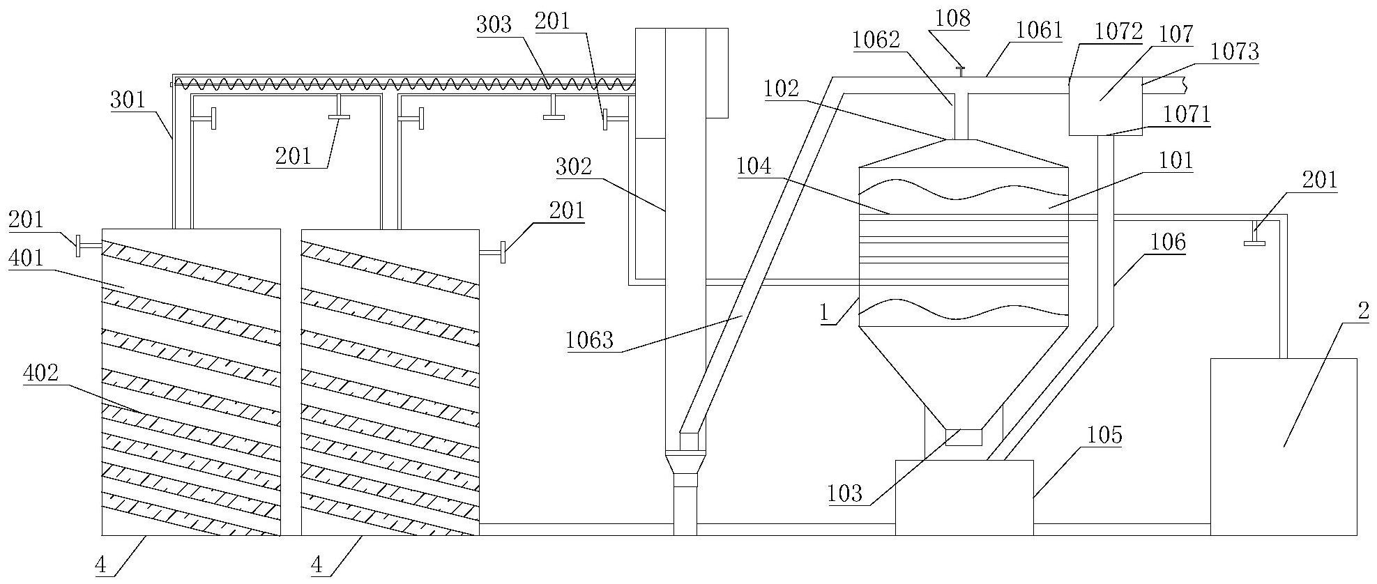 本实用新型涉及一种食品炒制后的冷却储存装置,其包括:冷却装置,冷却装置包含罐体和换热器,空腔内设有冷却物料的第一冷却件,第一冷却件与换热器相连;冷却装置还设有中转箱、循环管和旋风分离机;旋风分离机通过循环管分别与中转箱和进料端相连,用以形成物料循环冷却路径;传输装置包含传输机构和第二冷却件;储存罐包含储存空腔,储存空腔内设有第三冷却件,第三冷却件分别与第二冷却件和换热器相连,以形成换热循环路径;本实用新型能够对炒制后的食品进行冷却并在储存过程中继续冷却;循环冷却路径使得物料的冷却更彻底,降温效果明显;换热循环路径则使得整个装置的换热工作形成一个循环,换热效果好并且能够集中调控,方便用户使用。